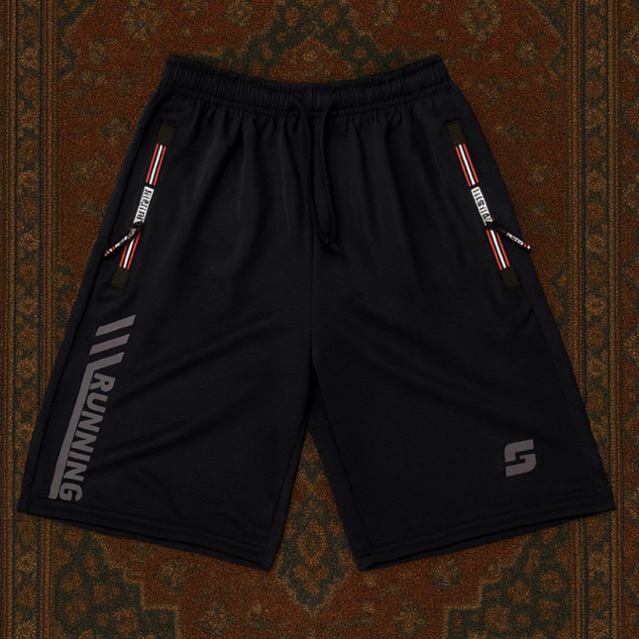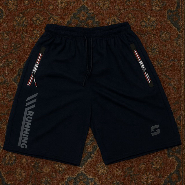 Celana Pendek Olahraga - Celana Running Pria Sport - Saku Zipper Gym Fitnes Bahan Tebal Melar Nyaman