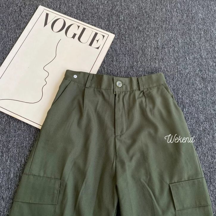 (Gratis Ongkir) Celana Cargo Pants - Highwaist Loose Cargo - Celana Cargo Wanita