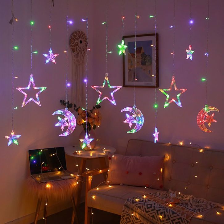 Lampu Hias Lampu LED Bintang Bulan Tirai Lampu Dekorasi Outdoor Tahan Air Lamp