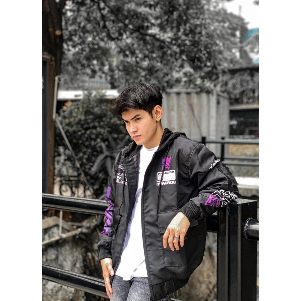 BOMBER JACKET PRIA CYBER GEAR BLACK WINDBREAKER - JAKET MOTOR PARASUT WATERPROOF PREMIUM