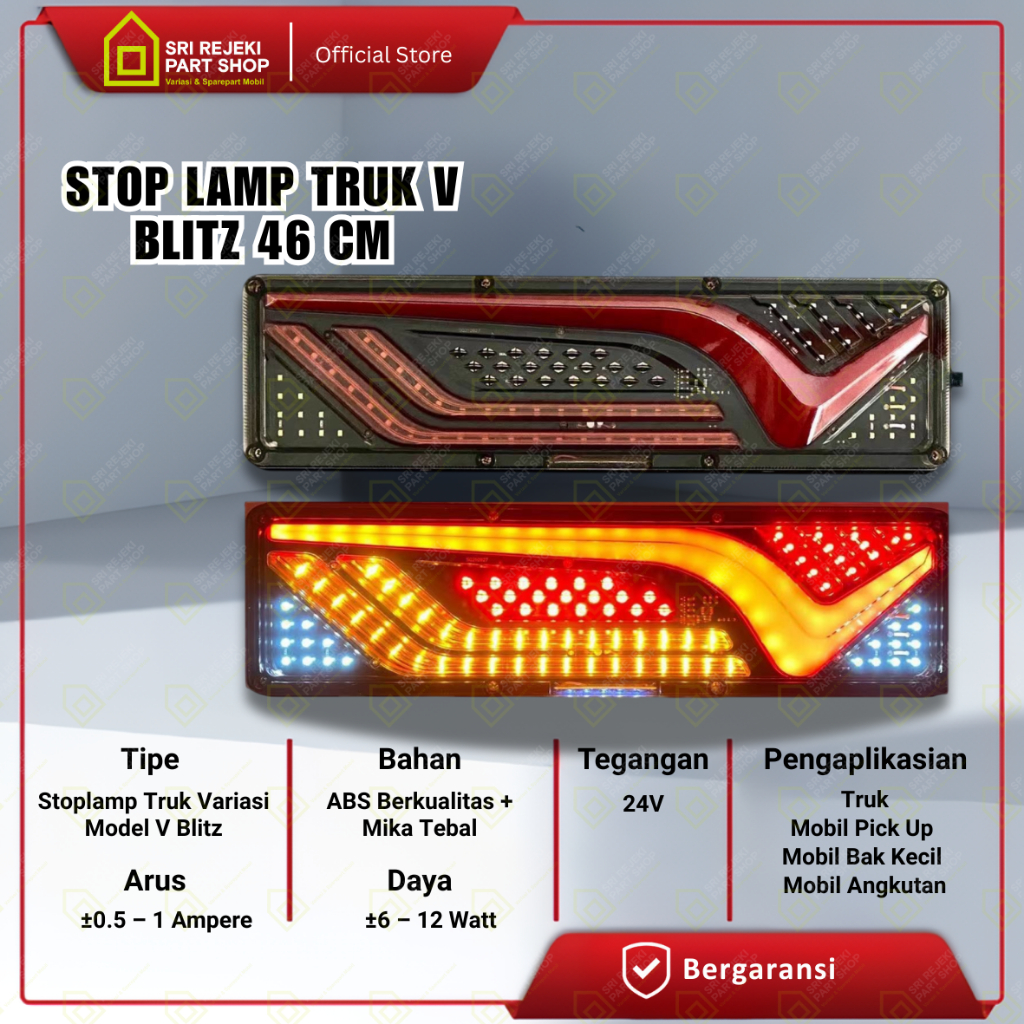Running Stop Lamp Truk Variasi 46 CM Model V Blitz 12 - 24 Volt Lampu Belakang Rem Sein Modifikasi