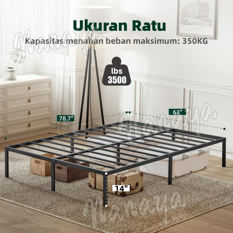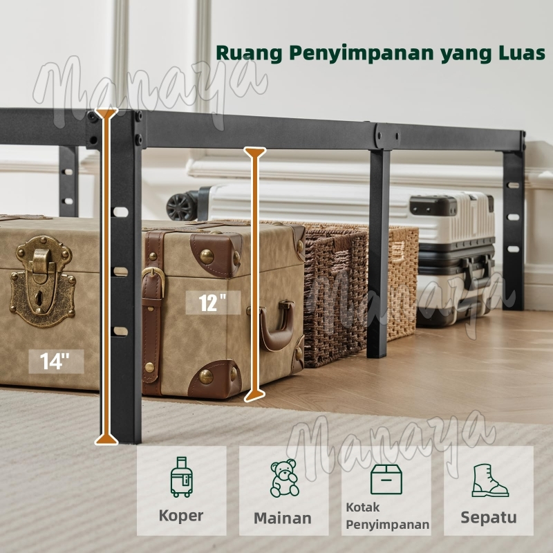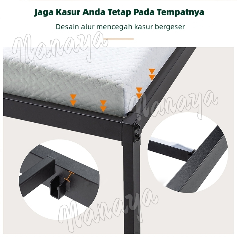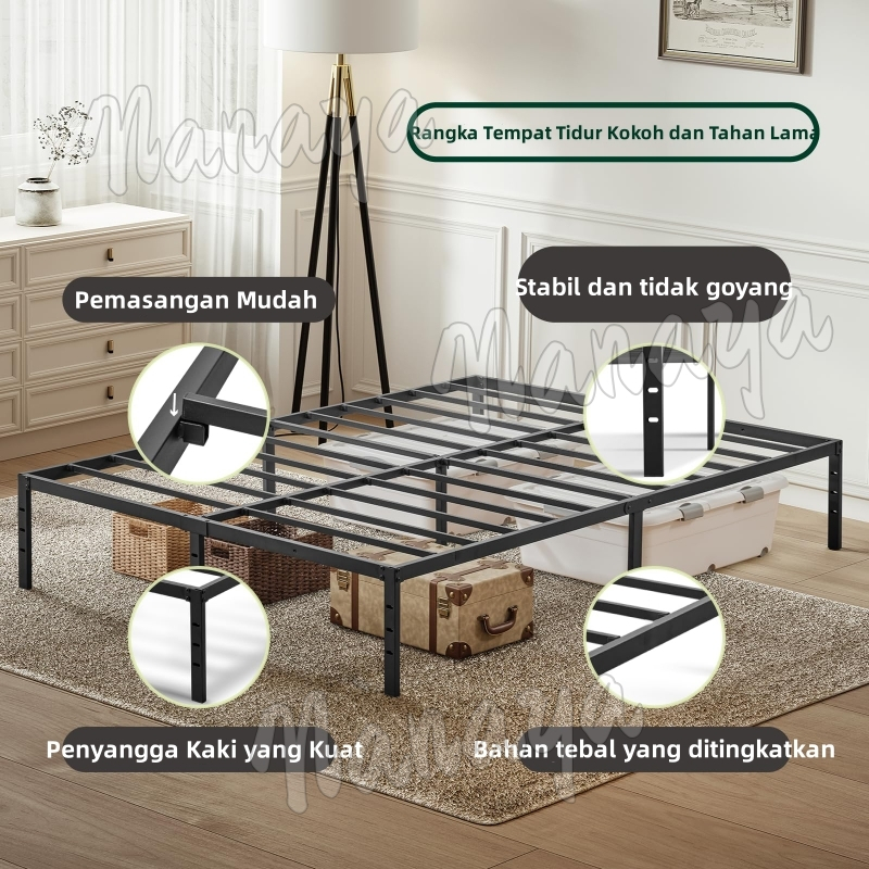 Nanaya Tempat Tidur Ranjang Dipan Besi Easy Assembly Tinggi 34CM Tebal Kuat Kokoh