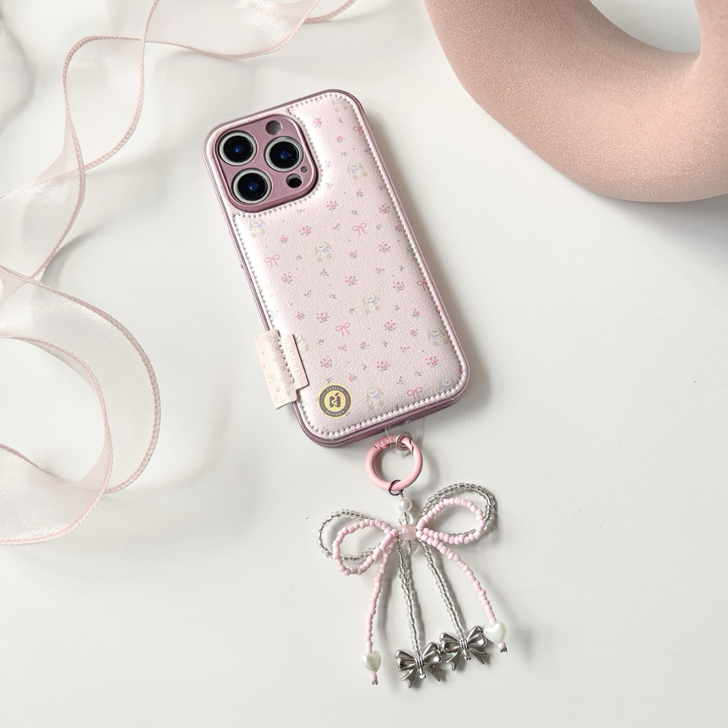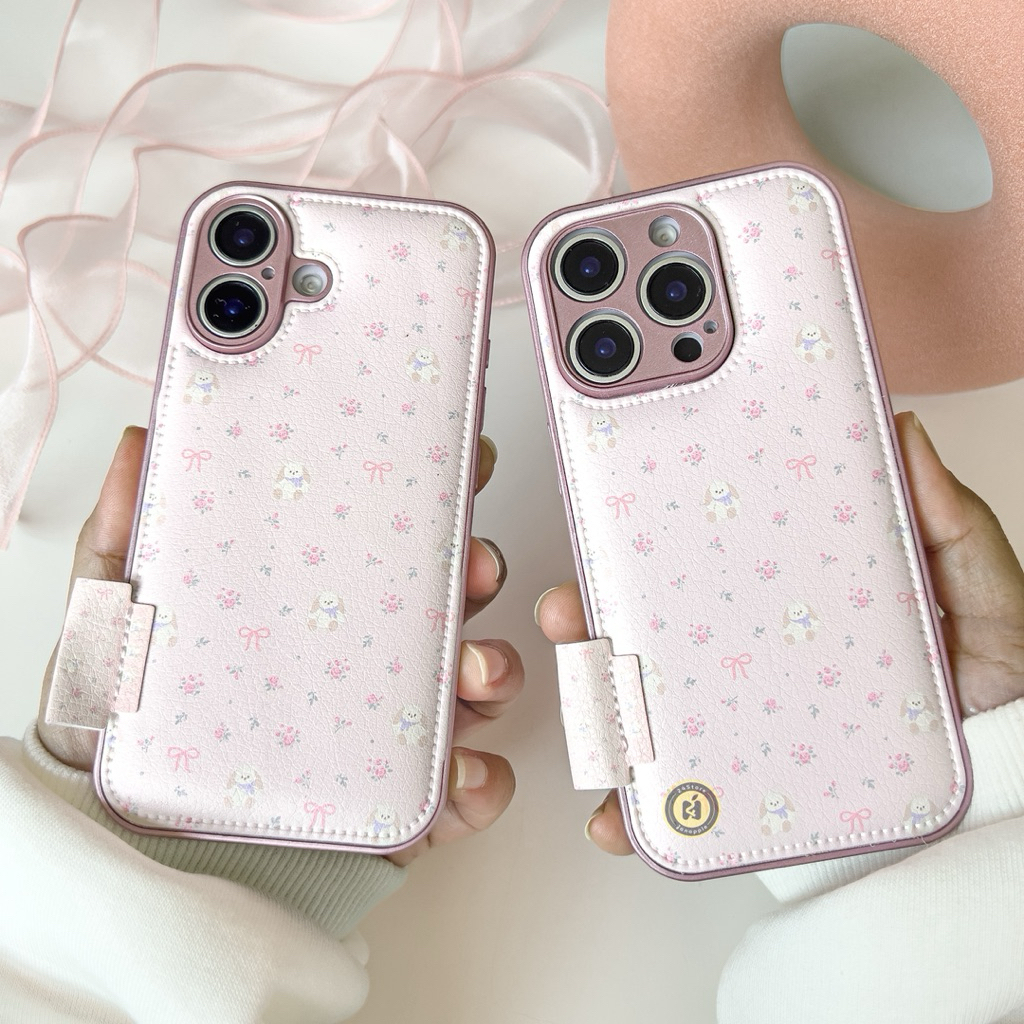 LEATHER FLUFFY PINK PUPPY BOWKNOT CASE IP 11 12 13 14 15 16 PRO MAX PLUS