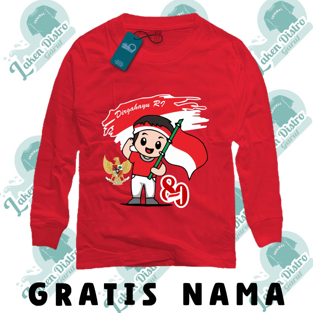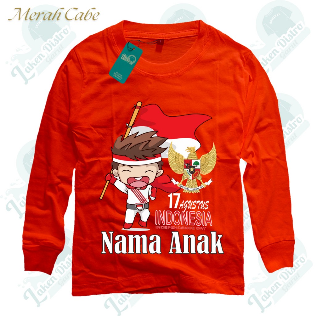 Lakendistro Official Kaos Anak Kemerdekaan 17 Agustus Lengan Panjang Free Custom Nama umur 1 - 13 Th