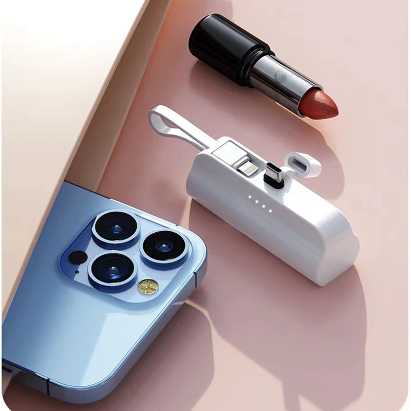 Mini Portable PowerBank 5000mAh Dengan Kabel Type-C / IOS Mini Emergency Charge Portable Power Bank Untuk Xiaomi HUAWEI