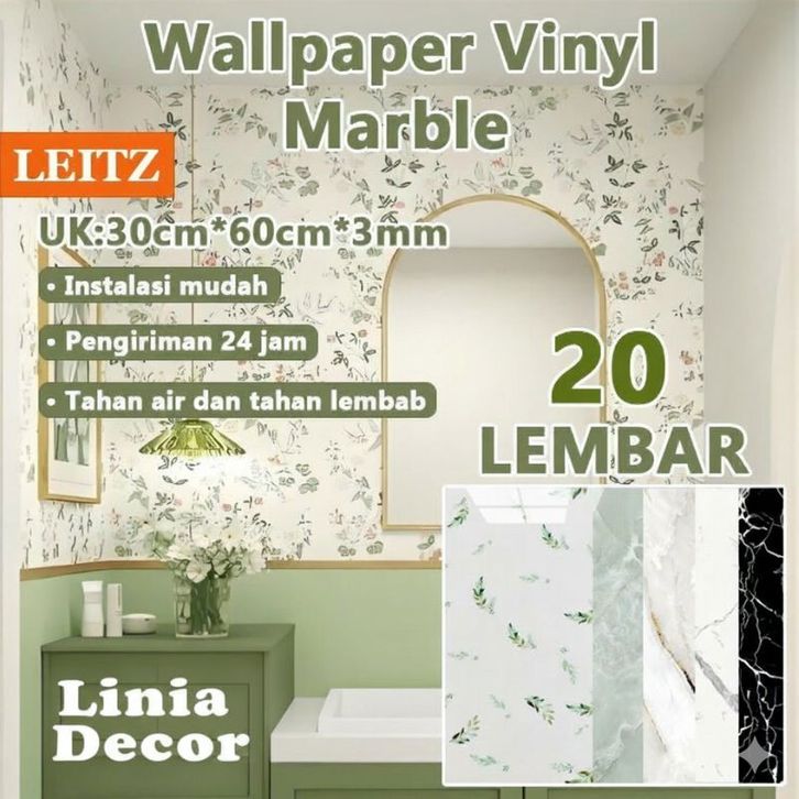 Wallpaper Dinding PVC Vinyl Marbel Ukuran 30.60cm 20 Lembar Stiker Dinding Marmer Motif Marmer Anti Rayap