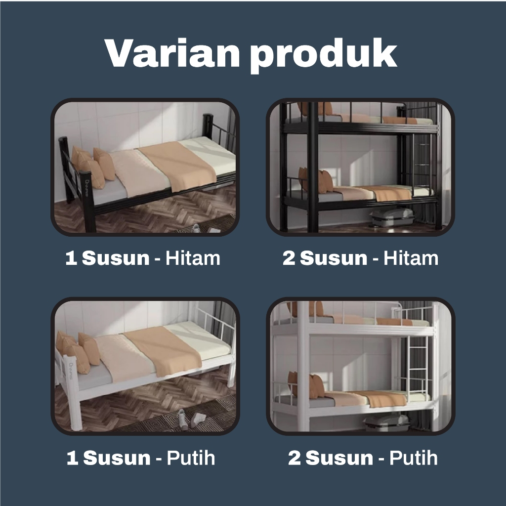 ONNAIS Ranjang Susun Besi 1-2 Tingkat Tempat Tidur Tingkat Minimalis Kuat Anti Karat Dipan Kasur