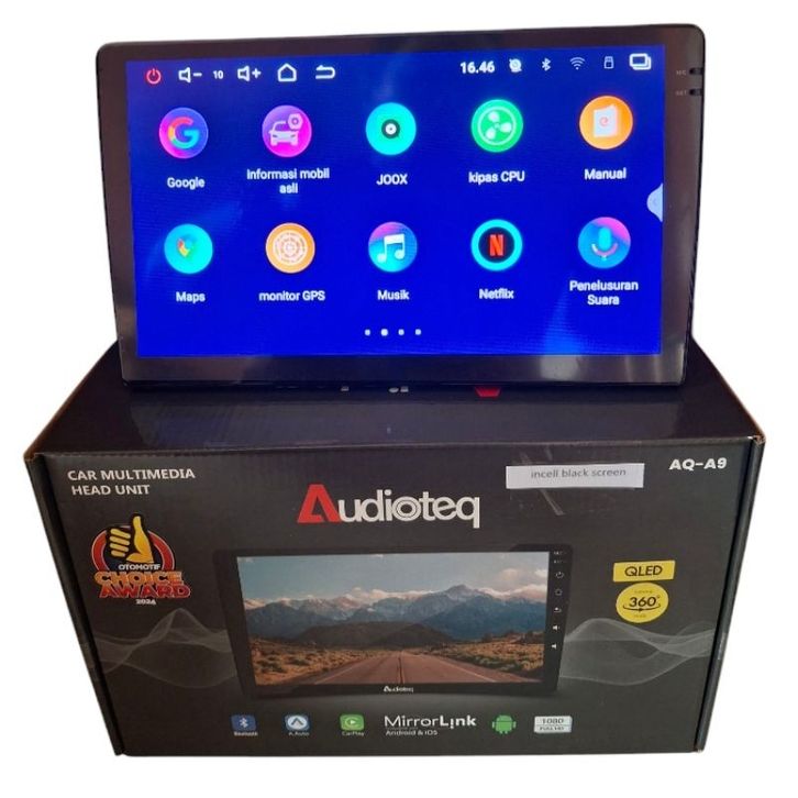 Head unit android 9 inch audioteq AQ-A9 ram 4+64 incell black screen support 360 QLED