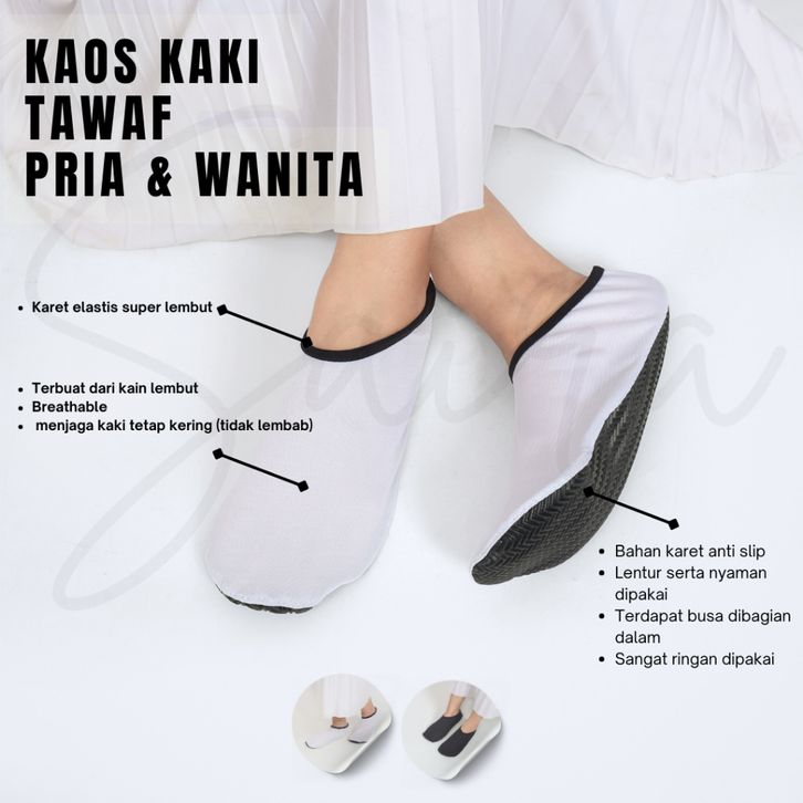 sepatu towaf kaos kaki umroh muslim Saira Kaos Kaki Tawaf Wanita Pria Premium Putih Anti Slip Perlengkapan Haji & Umroh