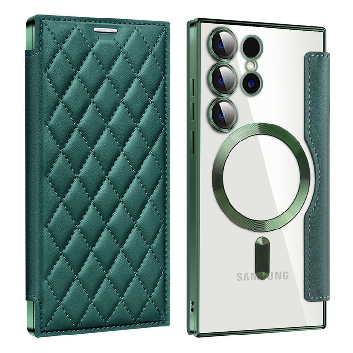 Casing Luxurious Electroplated Magnetic Flip Leather Case for Galaxy Samsung S25 S24 S23 S22 Plus S25 S24 S23 S22 Ultra