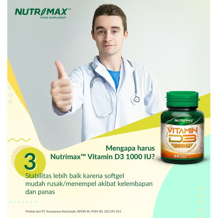Vitamin D3 Nutrimax 1000 Iu Kesehatan Tulang Gigi Imunitas Osteoporosis Autoimun