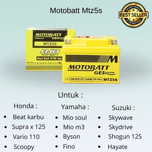 AKI MOTOR KERING MOTOBATT GEL MTZ5S MIO,FINO,BEAT PG BAGUS