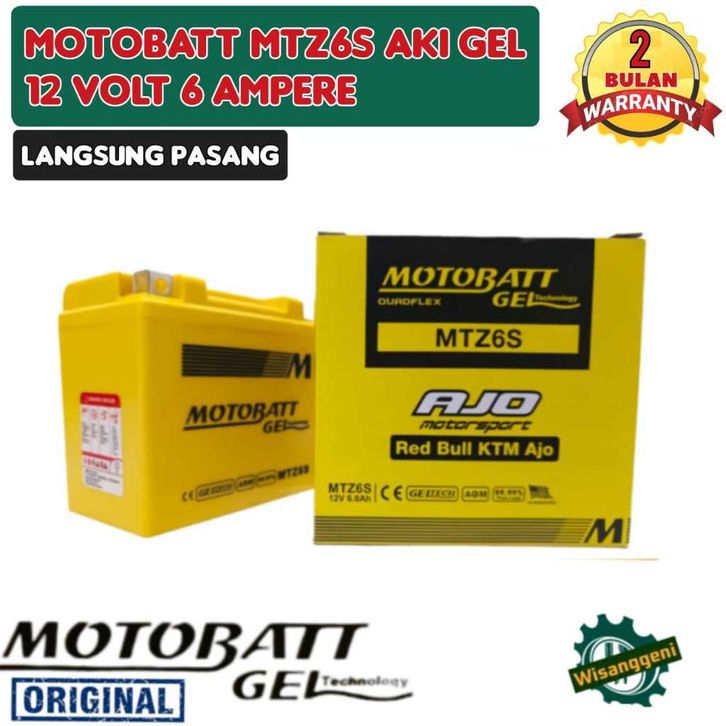 Aki motor Vario 125/150/Pcx 125/150/Satria Fu/CBR 150/Honda Sonic/Supra GTR Motobatt MTZ6V Aki GEL Original