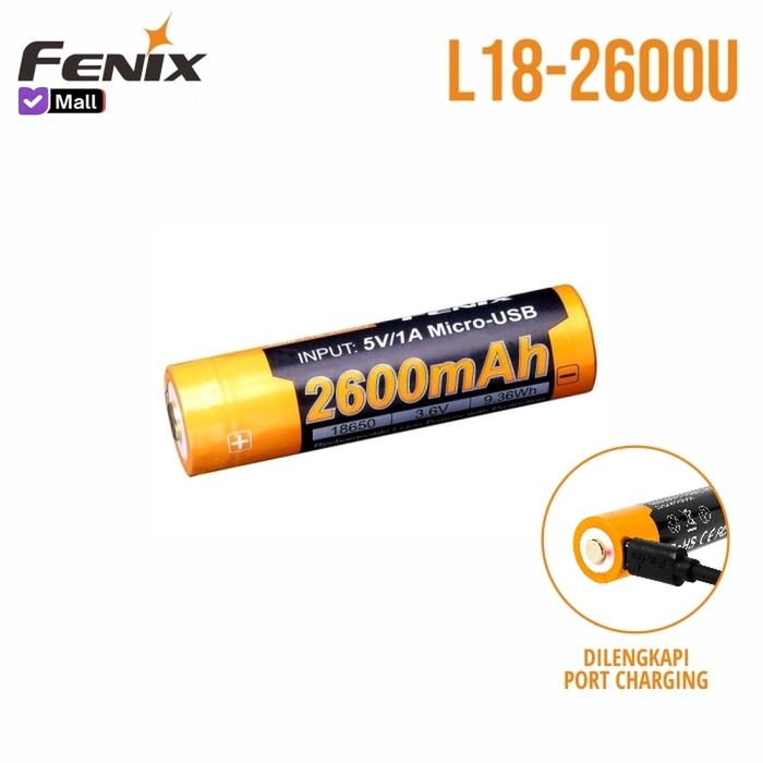 Fenix ARB-L18-2600U Battery 18650 2600 mAh USB Rechargeable - Orange Black