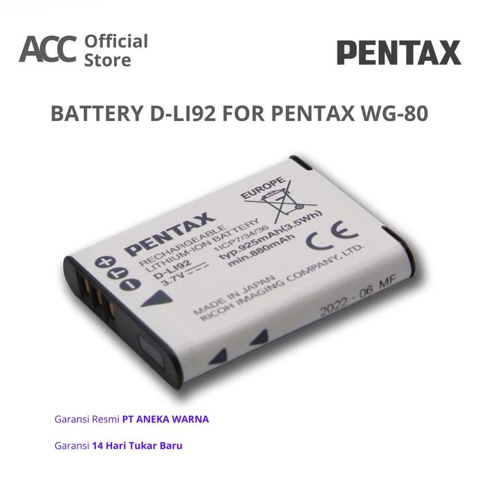 Pentax Rechargeable Battery D-Li92 for WG-70 & WG-80