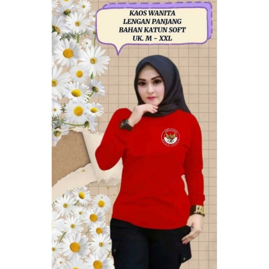 KAOS WANITA LENGAN PANJANG DIRGAHAYU INDONESIA UK.M-XXL EDISI HUT RI / 17 AGUSTUS / ATASAN WANITA / KAOS WANITA / PAKAIAN WANITA / KAOS LENGAN PANJANG / T-SHIRT / KAOS DISTRO / KATUN