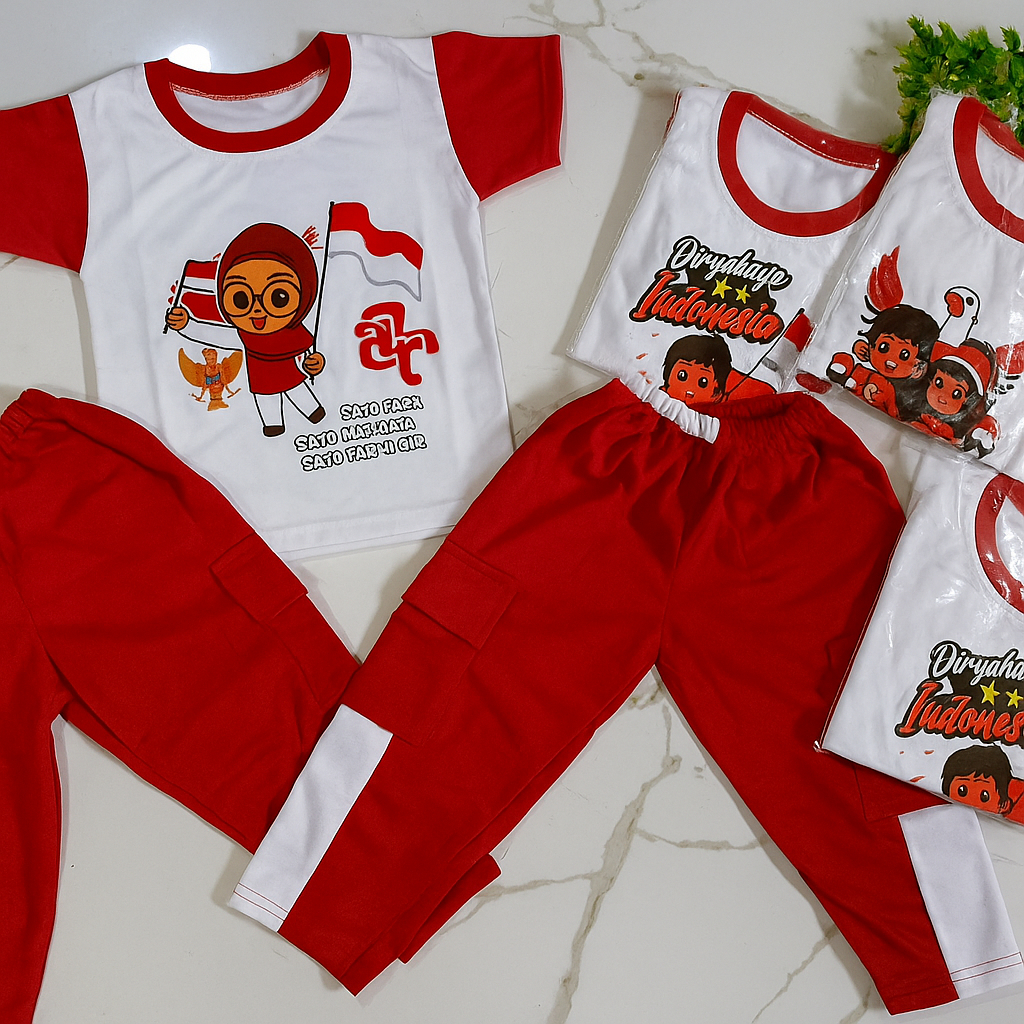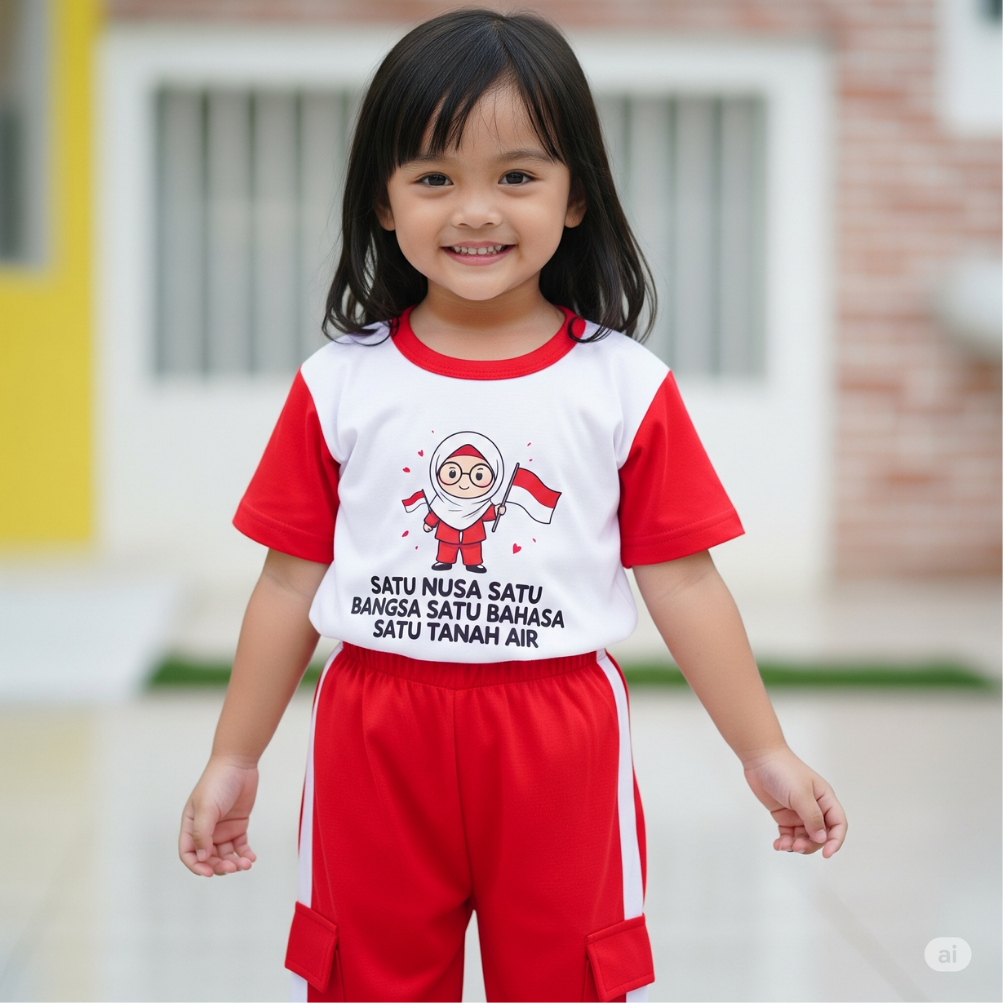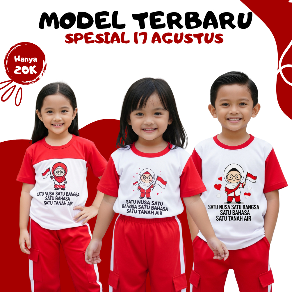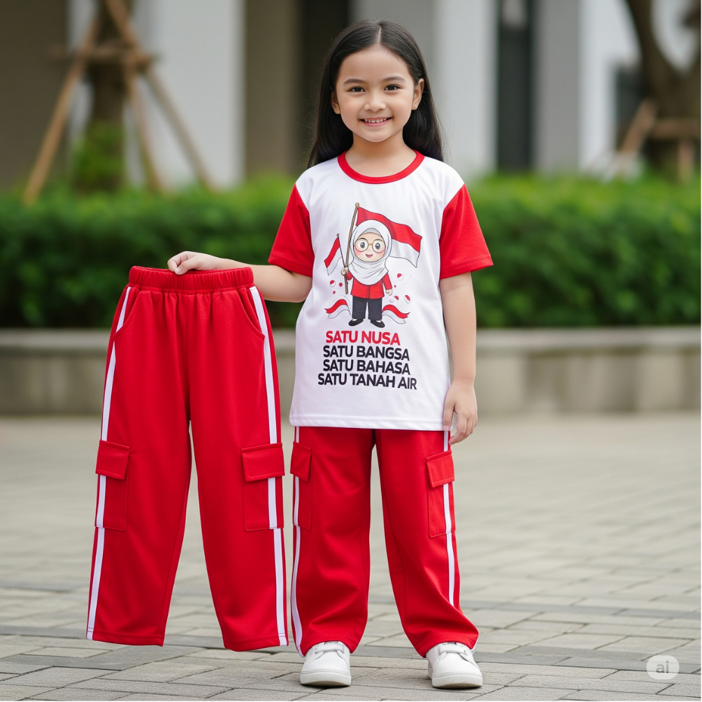 Gentattire - Setelan Baju Merah Putih Acara 17 Agustusan Kemerdekaan HUT RI 2025 Anak Laki Laki Perempuan Pertiwi