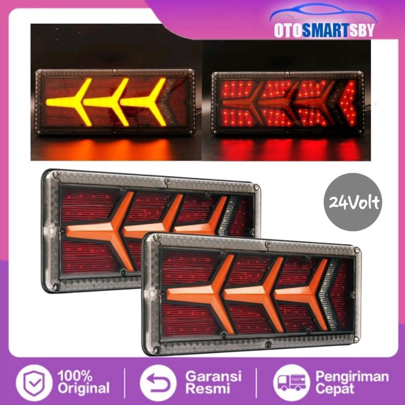 (Harga 1 Pasang) Stoplamp Truck Model Lambo 3 Panah 24Volt 41CM Dan 46CM