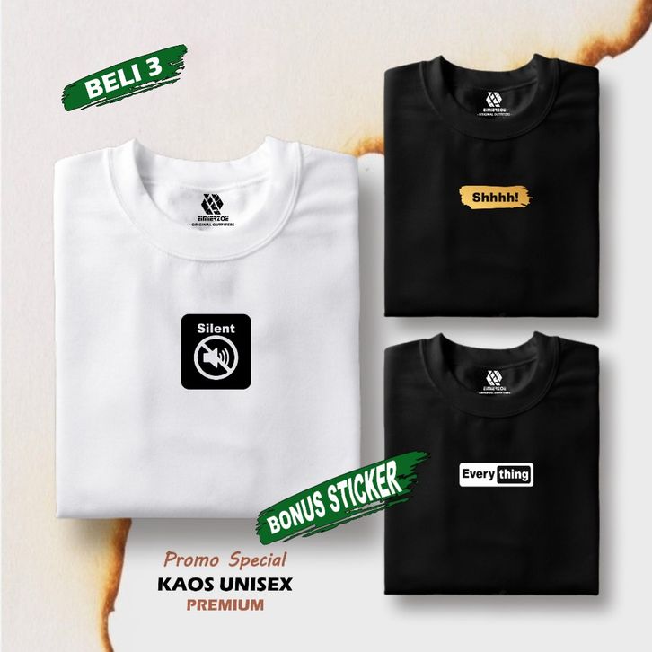 Baju Kaos Pria Distro Cotton Combed 30s Premium Tshirt Everything X Silent Buy 1 Get 3 Pcs
