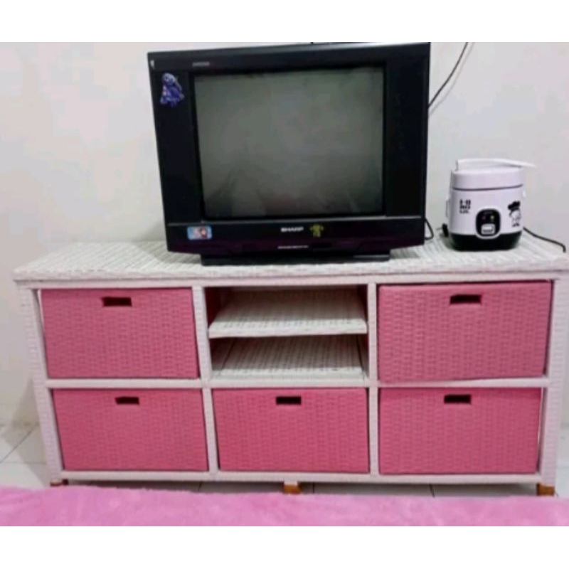 LEMARI ROTAN SINTETIS 5 LACI + MEJA TV & RAK BUKU | SERBAGUNA MINIMALIS PLASTIK TERMURAH BISA CICILAN FREE ONGKIR
