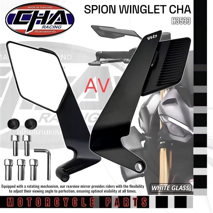 CHA Racing Spion Wing H3533 CHA Bahan Aluminium CNC Universal Motor Motorcycle Putih Bening Hitam Fleksibel Ditekuk
