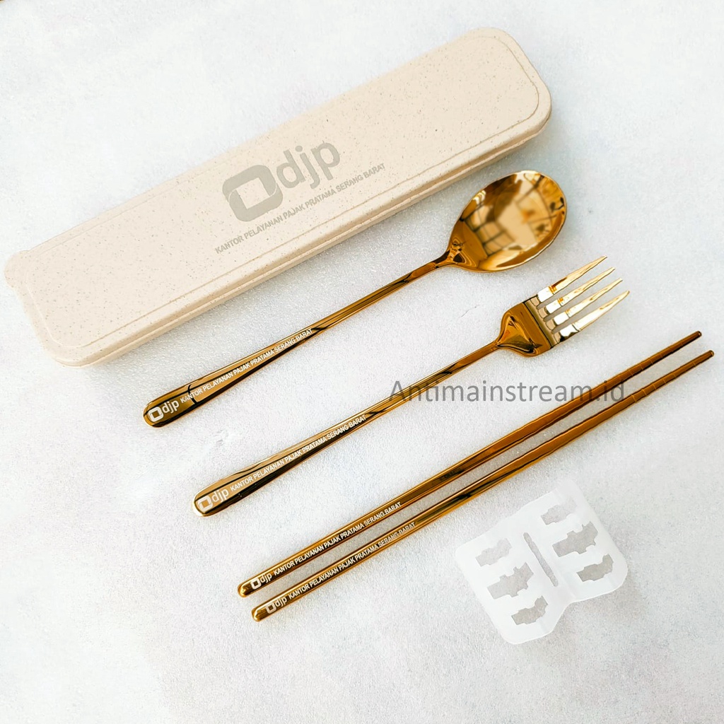 (Bisa Custom Nama) Set Alat Makan Korea Tebal Stainless Steel - Korean Cutlery Set - Sendok Makan Korea - Set Sendok Kor