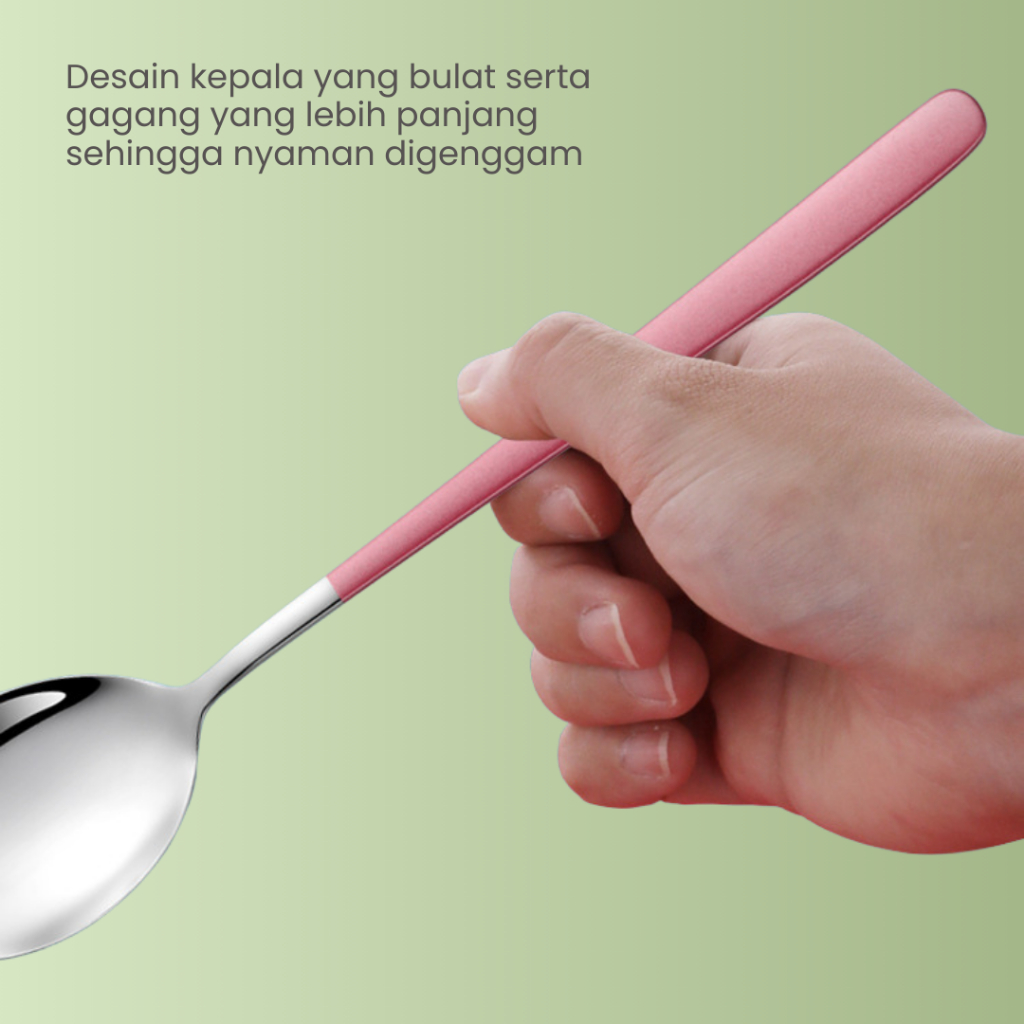 FUNNYCOOK Sendok Garpu Set Stainless Sujeo Korean Alat Makan Korea Tebal Warna Warni - Pink
