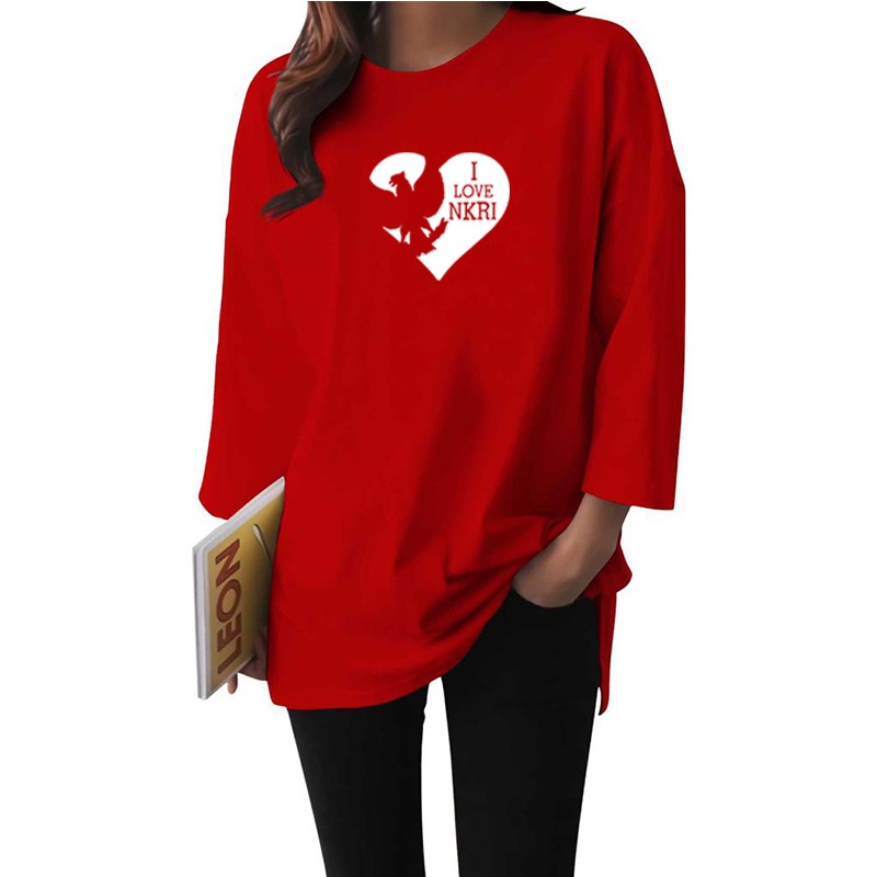 Kaos 17 Agustus / Kaos Oversize Wanita Love NKRI / Kaos Oversize Jumbo Lengan 7/8 / Kaos Wanita