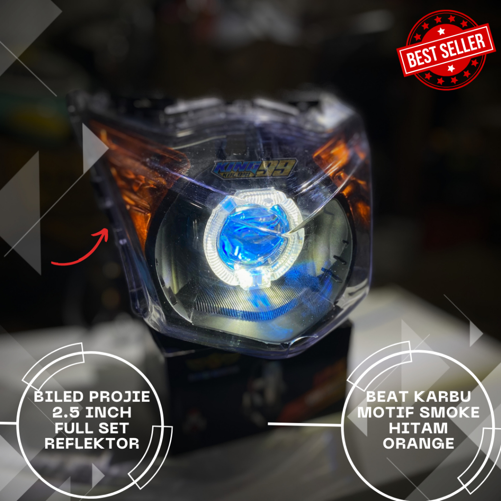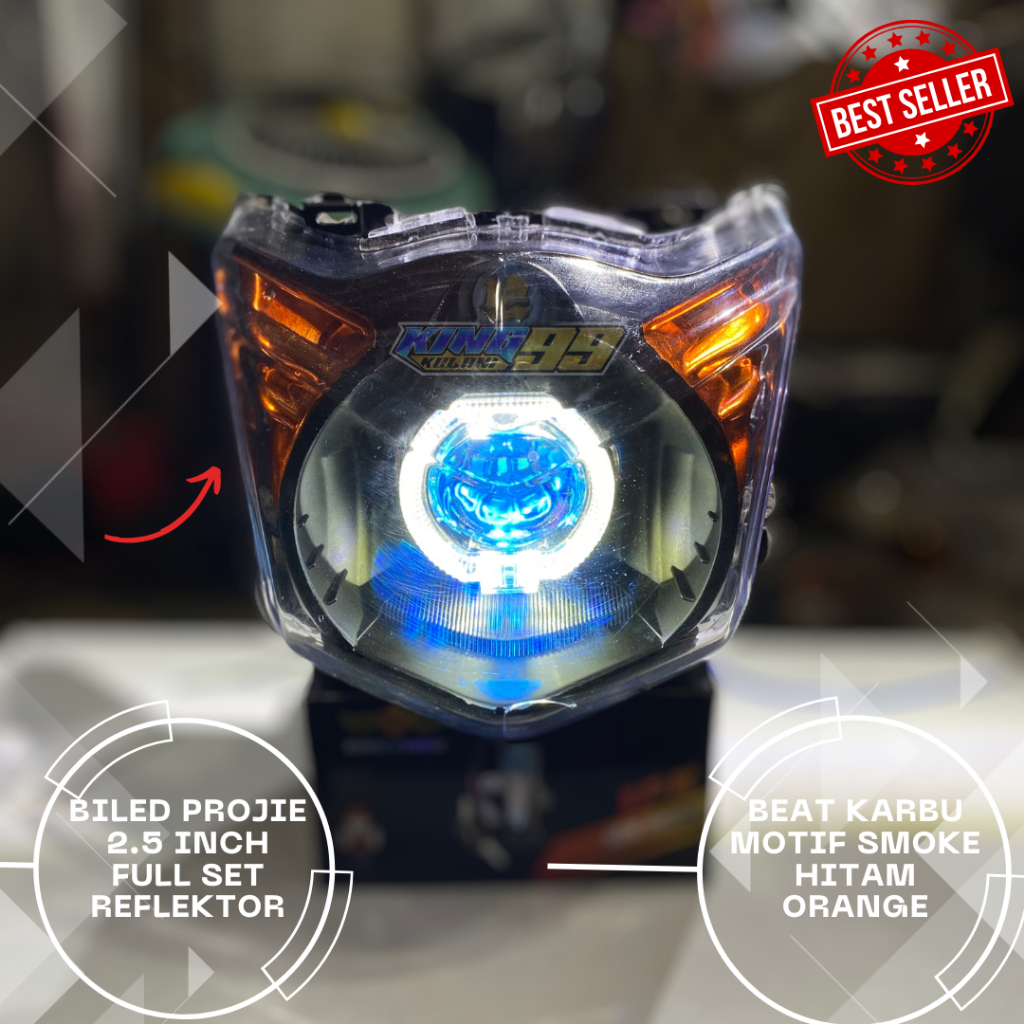 Lampu Biled Beat Karbu 2.5 Dua Mode Smooke Full Set Reflektor