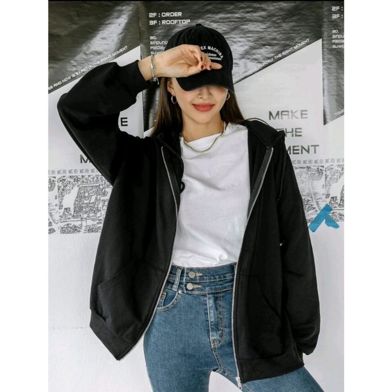 (Imn) XXL Sweater Hoodie Jaket Zipper Polos Wanita Oversize | Hoodie Polos Jaket jumbo Wanita korean Style | Hoodie jaket Premium Distro