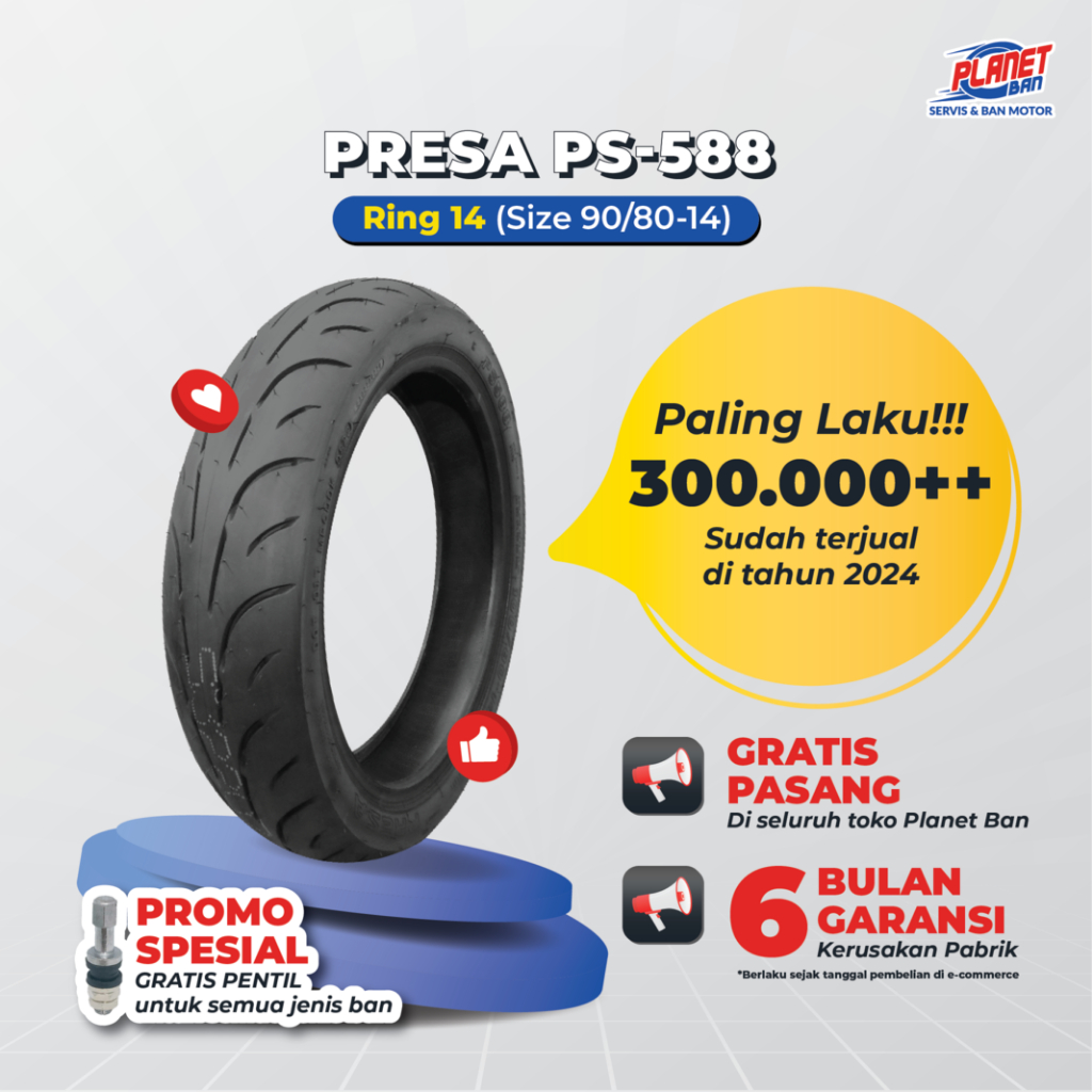 Ban Motor Ring 14 - 90/80 Presa PS-588 (Ban Motor Vario 125 New, Vario 150, Xeon)