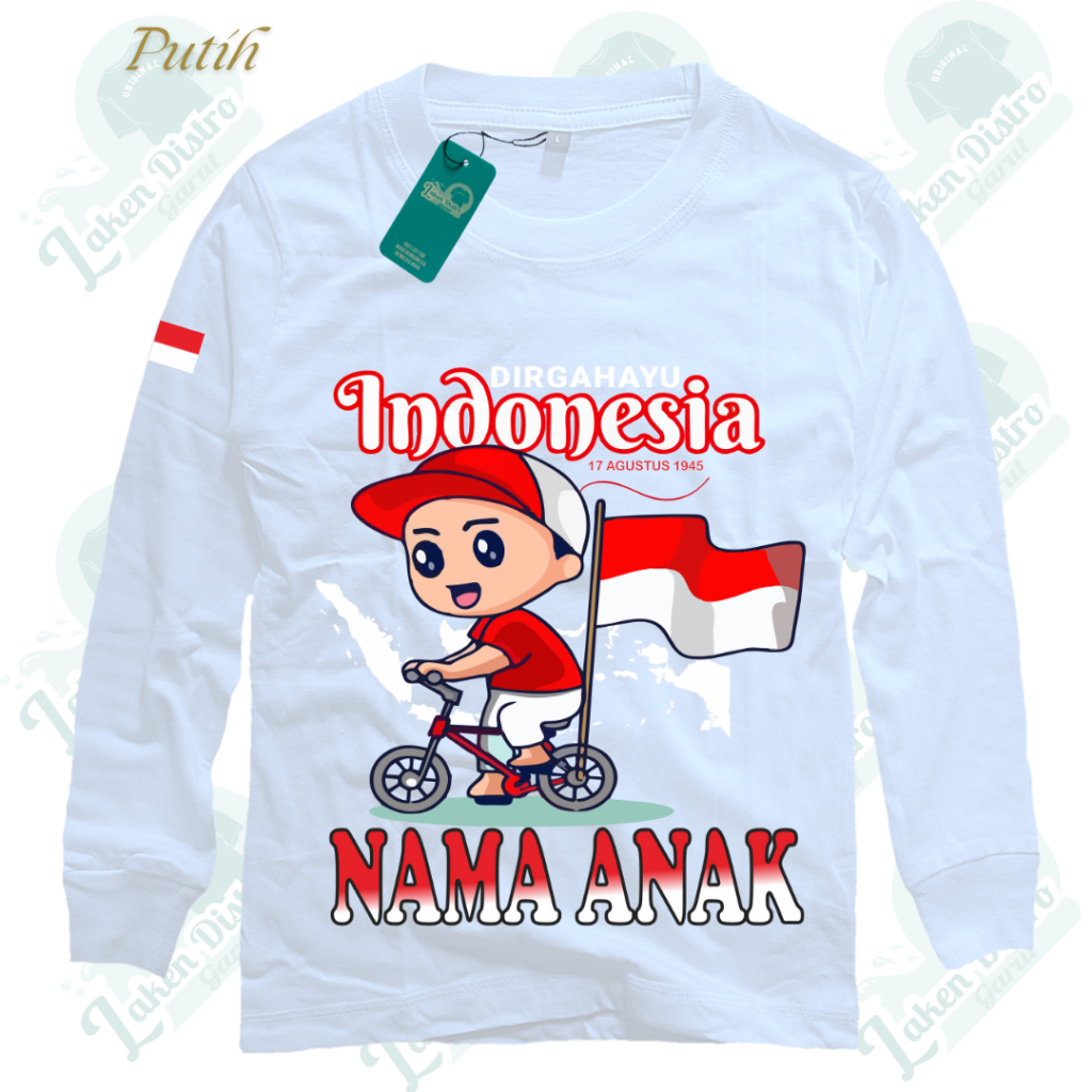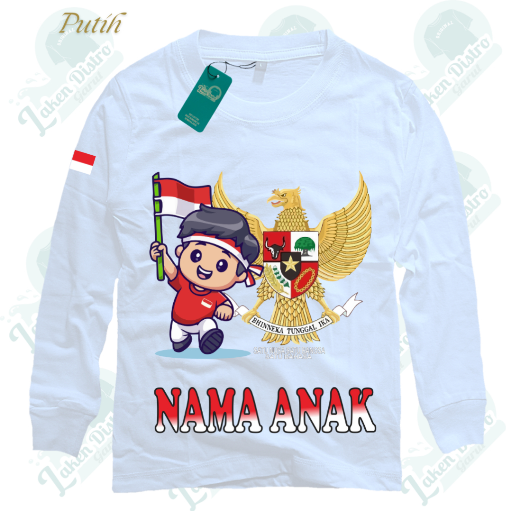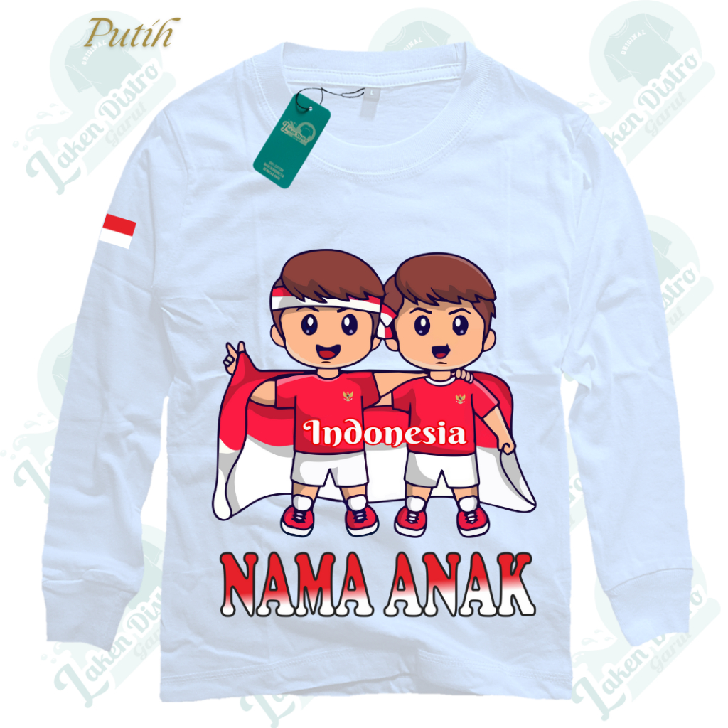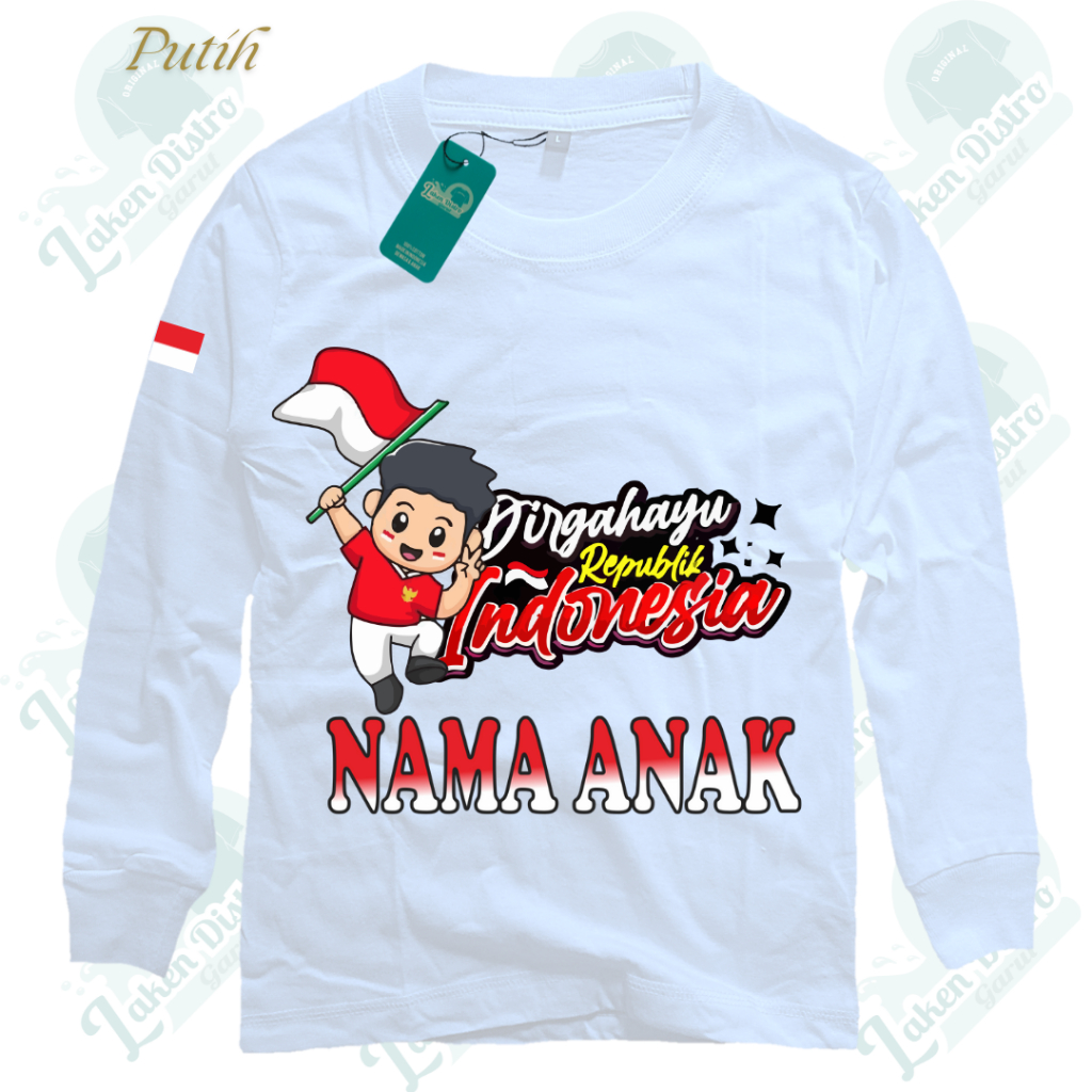 Kaos Anak Lengan Panjang Laki Laki Perempuan Kemerdekaan 17 Agustus Free Custom Nama Baju Distro