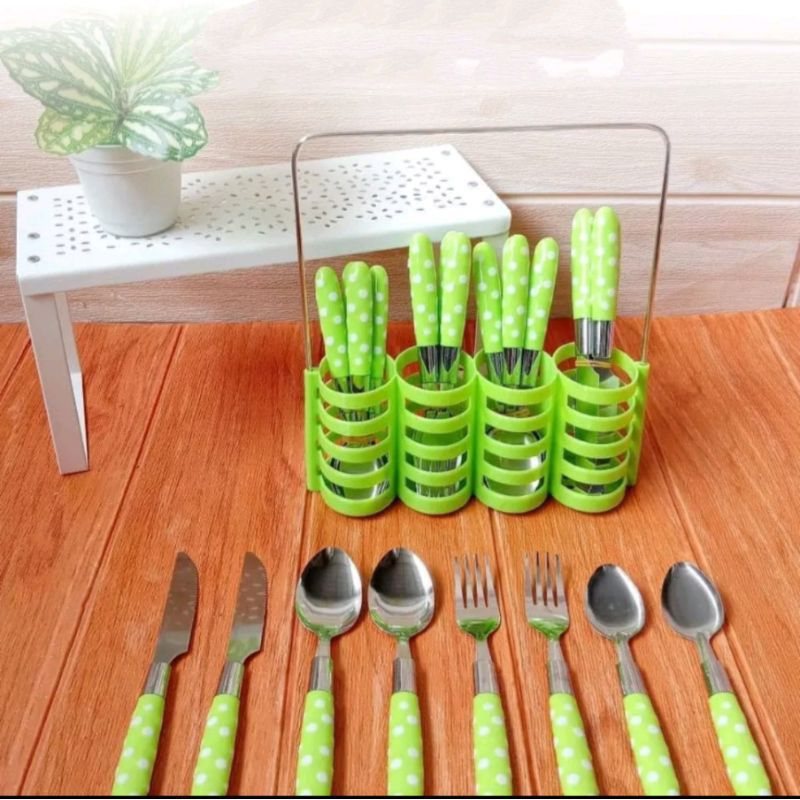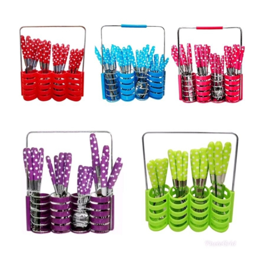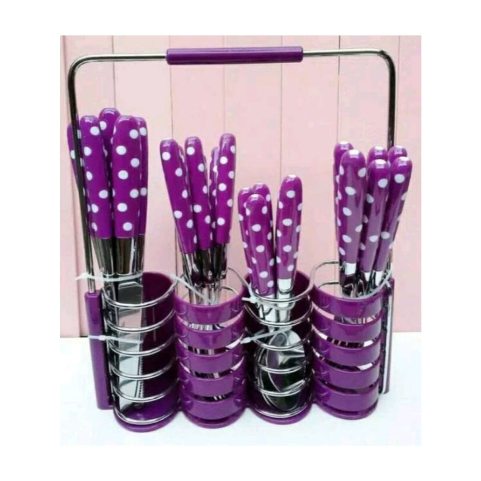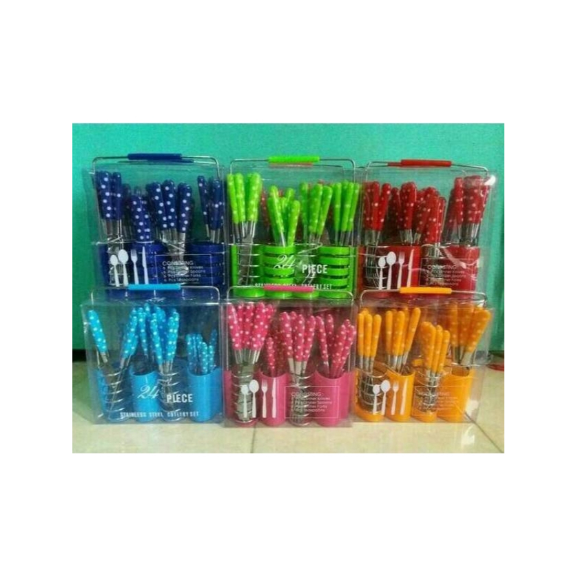 Sendok Sendok Garpu Makan Sendok Polkadot Set Stainless Sendok Garpu Pisau jg 24 Pcs