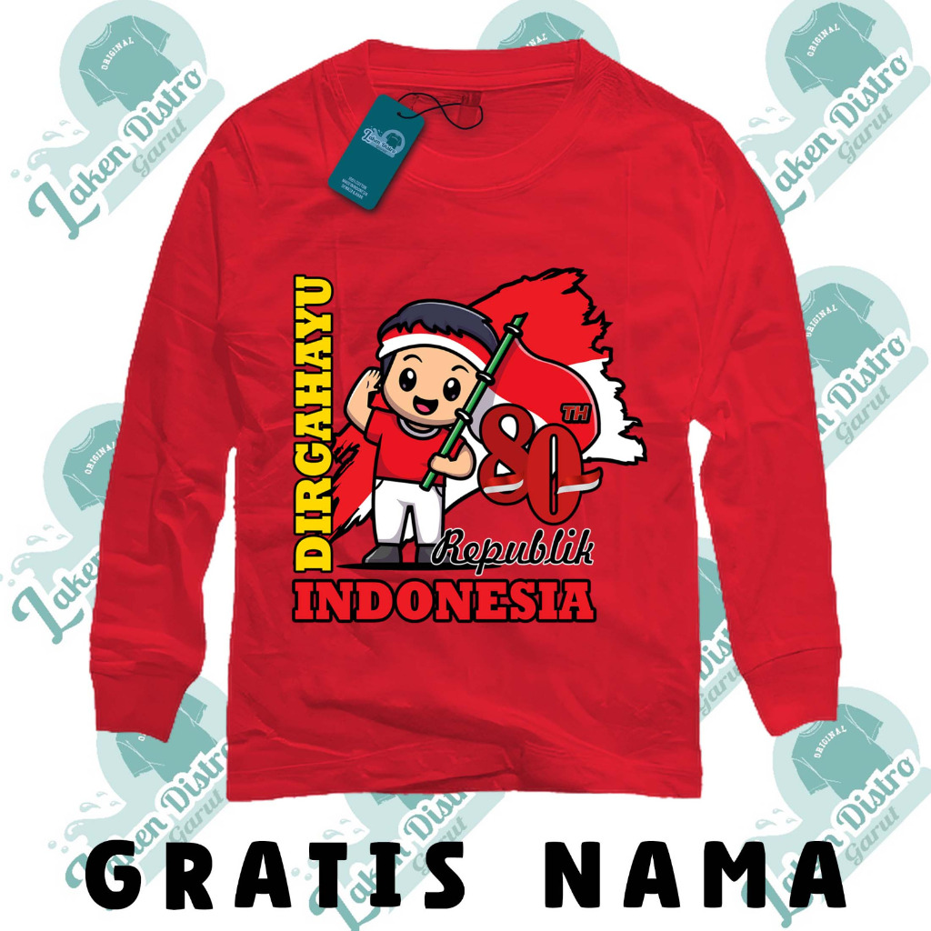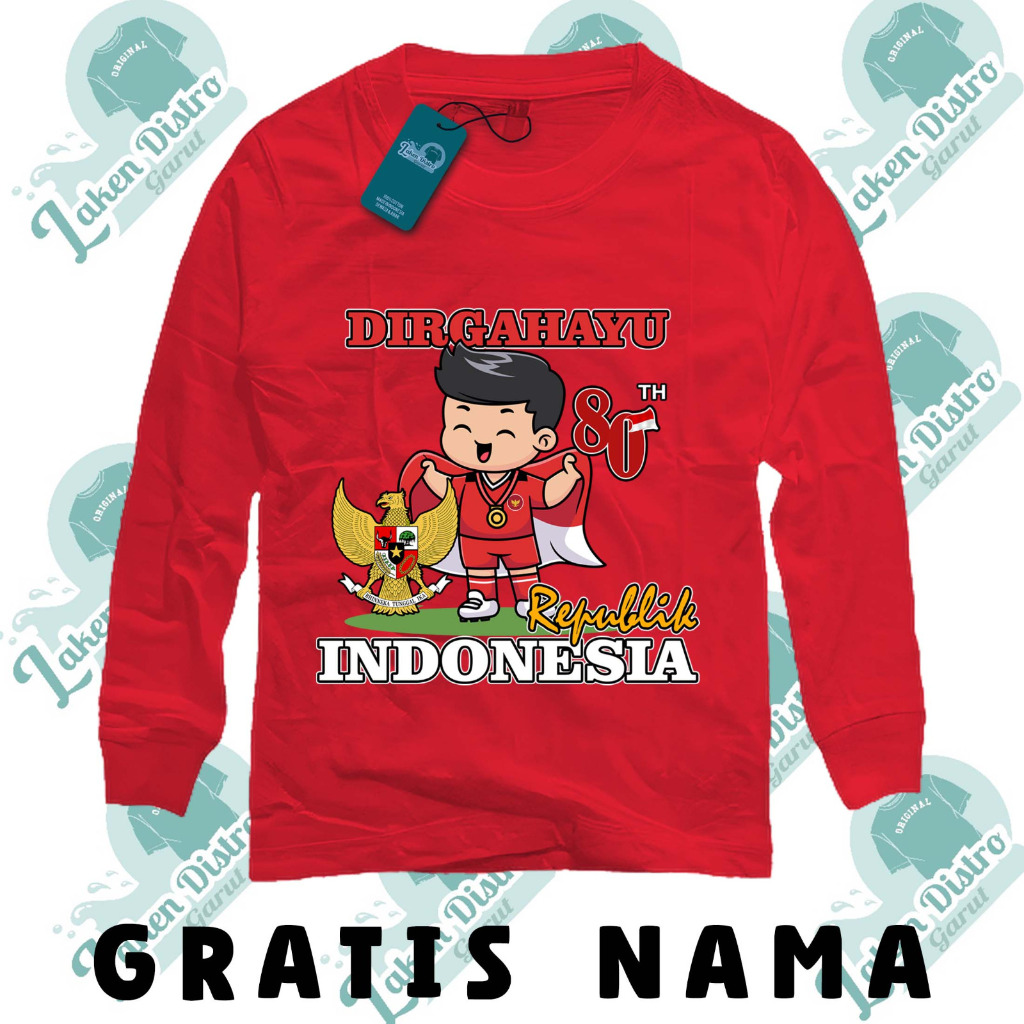 Lakendistro Official Kaos Anak Kemerdekaan 17 Agustus Lengan Panjang Free Custom Nama umur 1 - 13 Th
