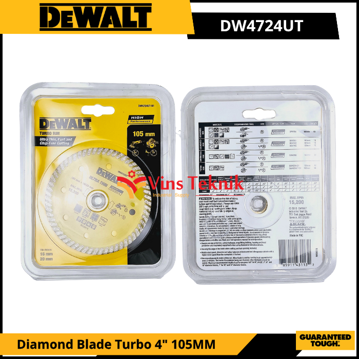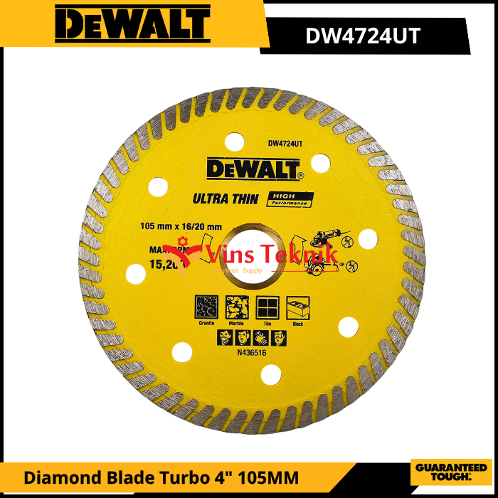 DEWALT DW4724UT Mata Batu Potong Keramik Batu Gerinda Diamond Blade Turbo Cutting Disc 4" 105x16/20mm