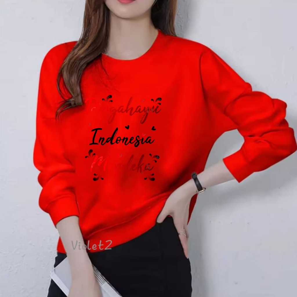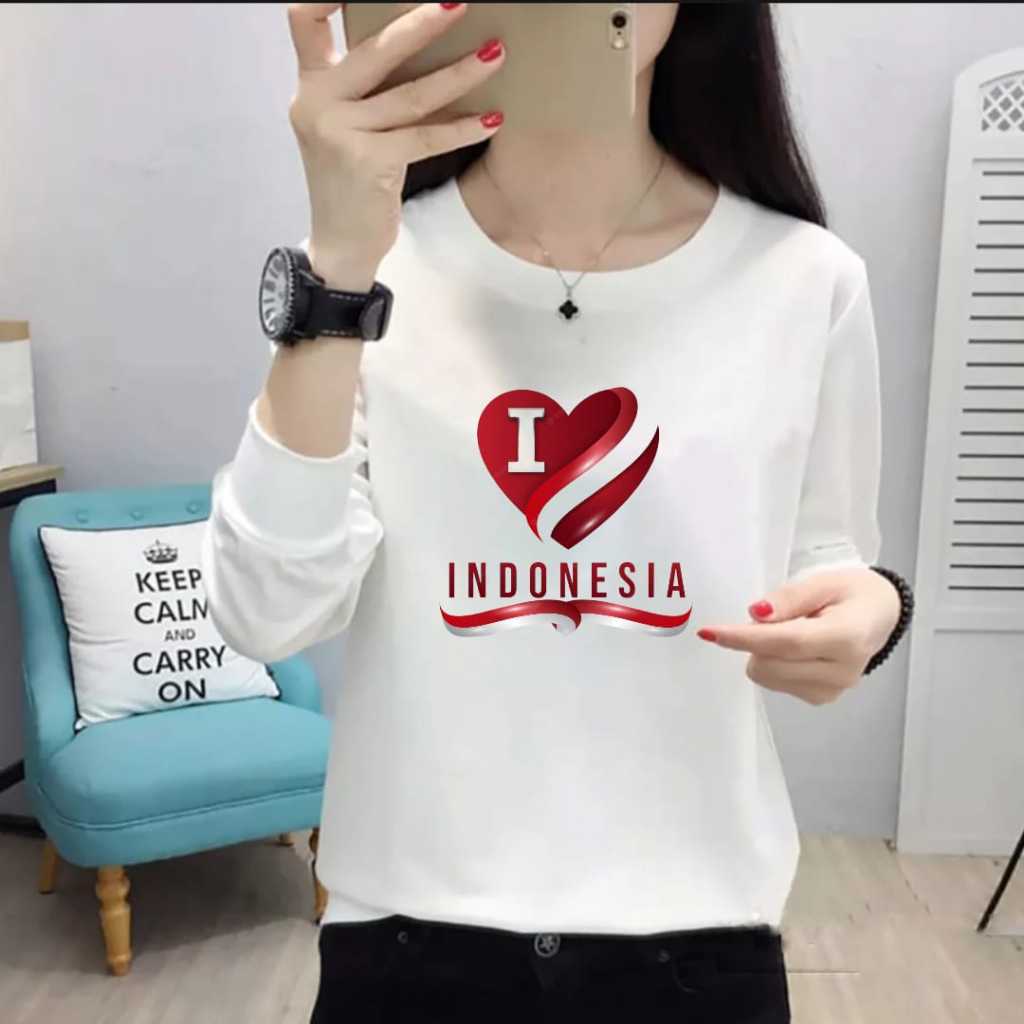 KAOS 17 AGUSTUS WANITA DEWASA LENGAN PANJANG MOTIF TRENDY CETAK DTF