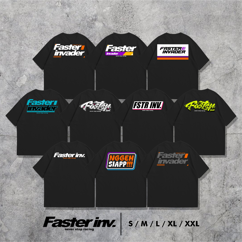 Atasan Baju Kaos FASTER INVARDER Distro Cotton Combed Unisex Hitam Gratis Sticker Pack Racing Banyak Pilihan Desain
