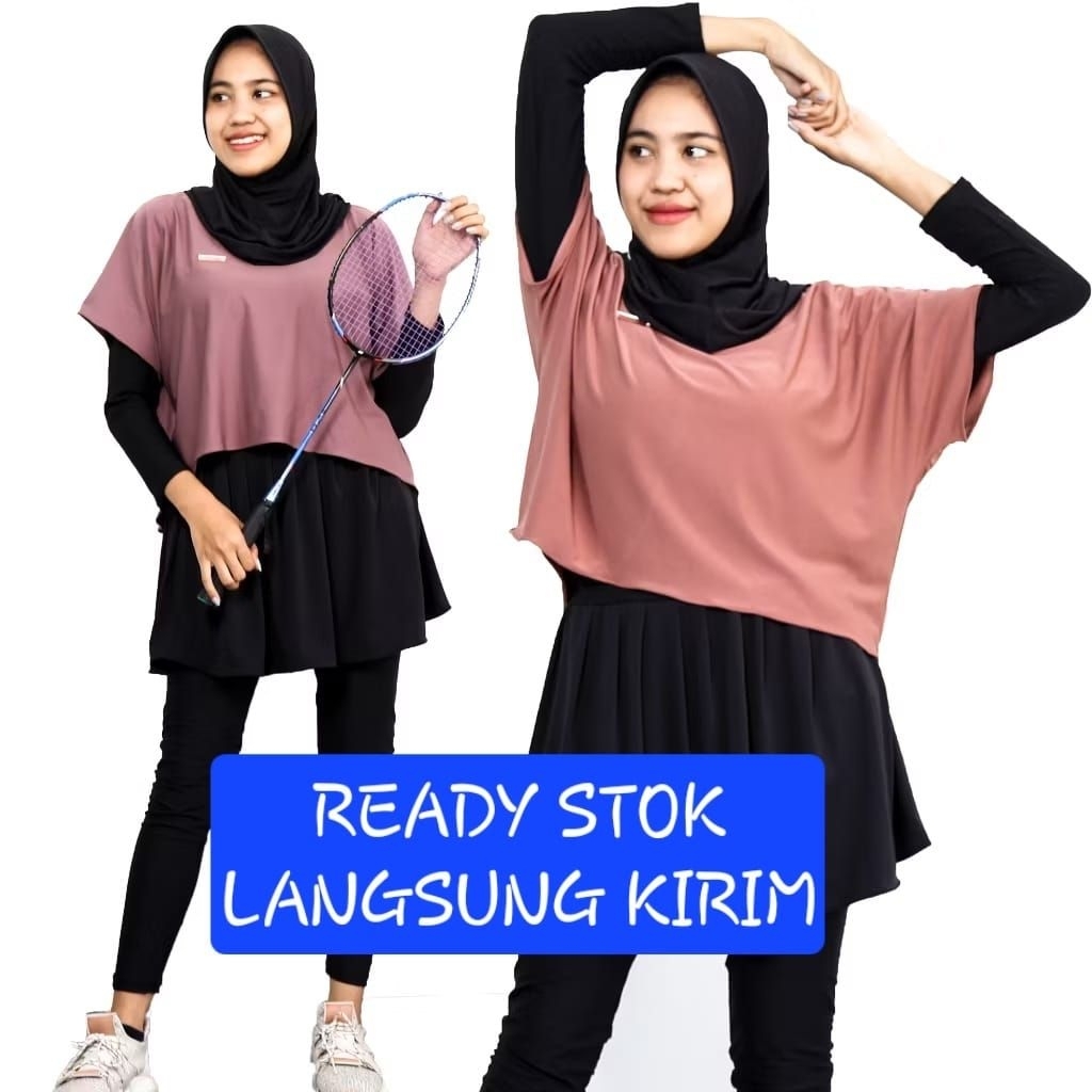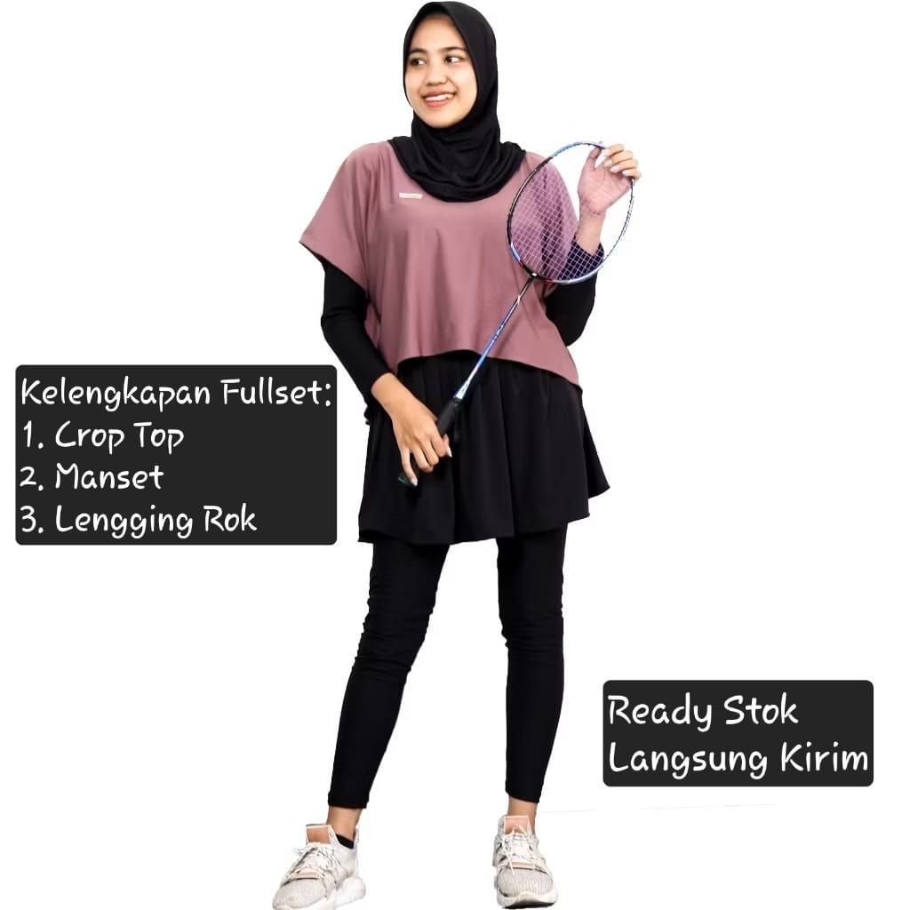 Setelan Baju Olahraga Wanita 3In1 Jersey Joya Set Legging Rok Manset & Atasan