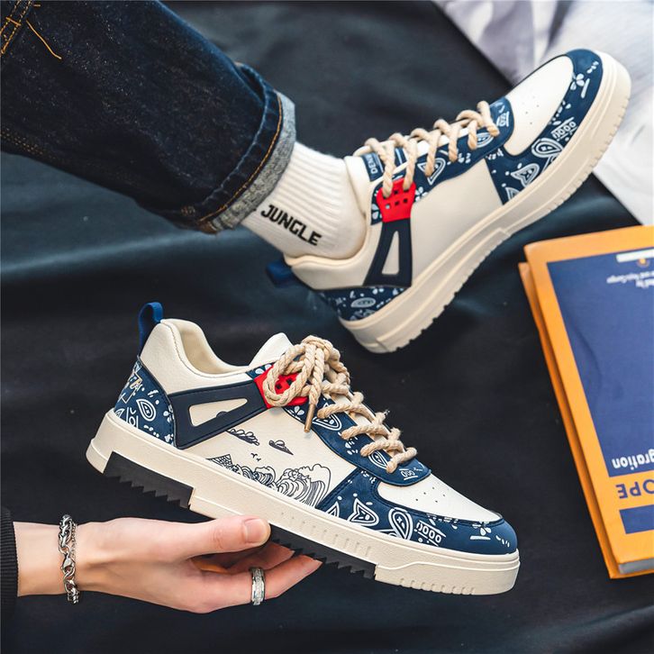 [Mall] Sepatu Sneakers Pria - Whoppy Magnus SL26 Sepatu Sneakers Pria Keren Motif Cream Biru Krem Navy Termurah