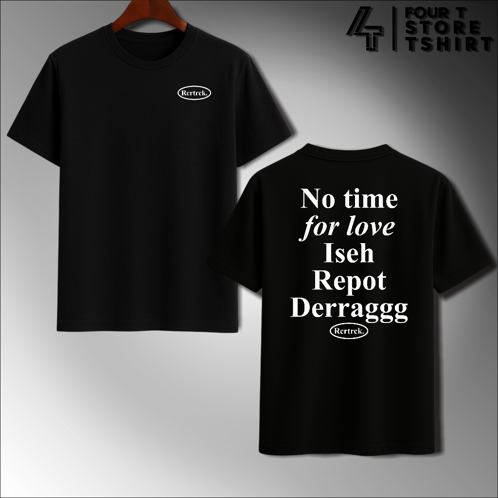 Baju Kaos No Time For Love Racing Iseh Repot Deragg Distro T-shirt Katun Combed Premium Atasan Pria