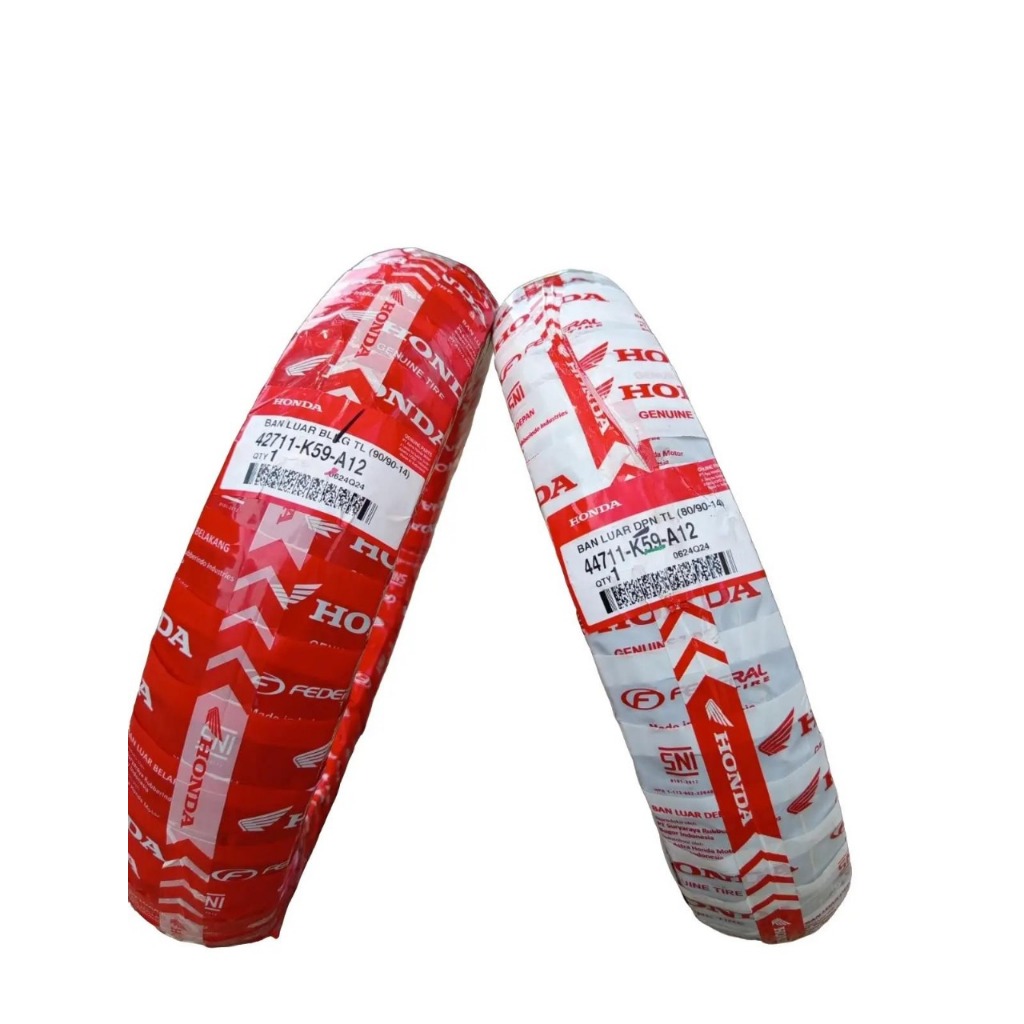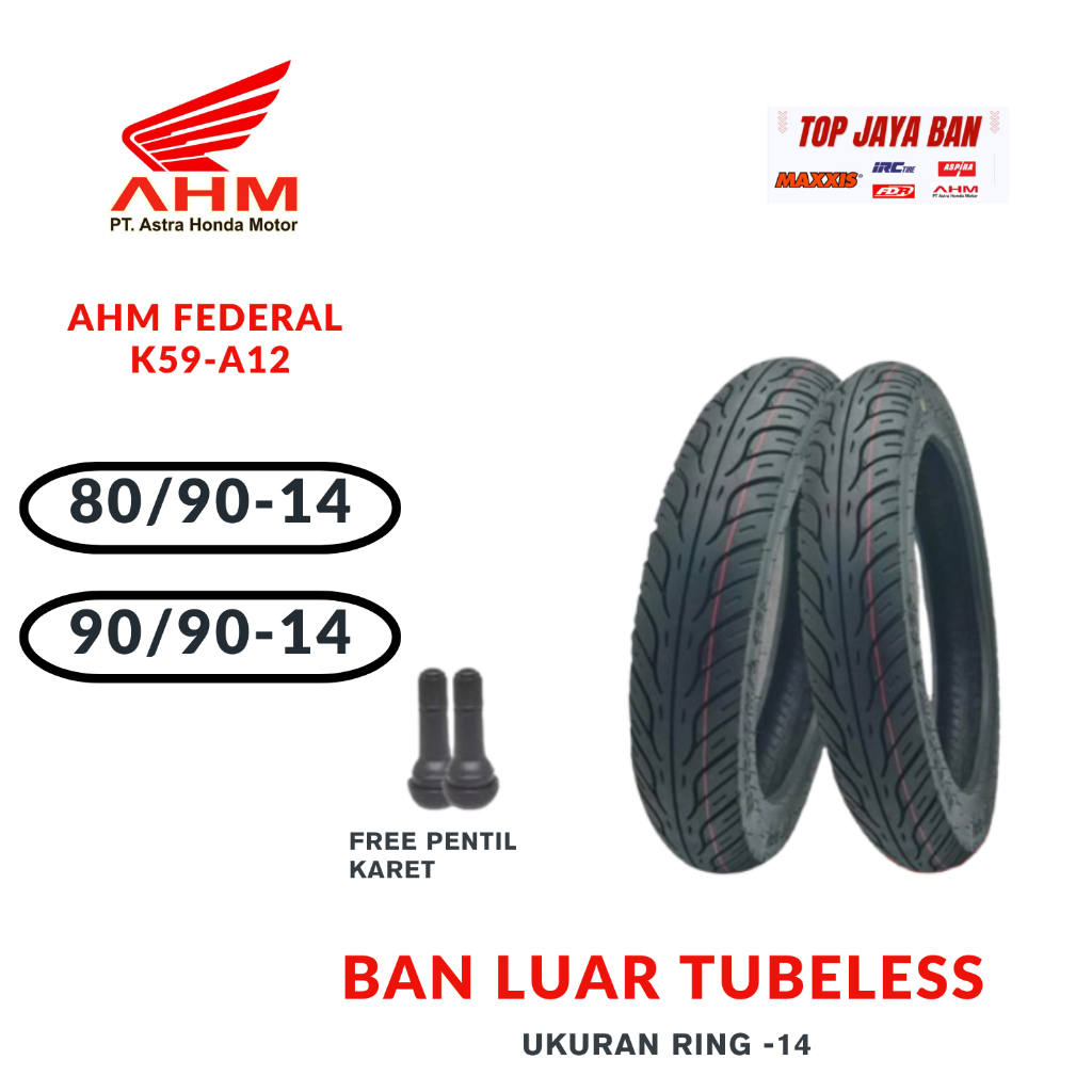 Ban Luar Motor AHM Federal K59-A12 80/90-14 dan 90/90-14 Ring 14 Tubeless Ban Depan Belakang Honda Asli Motorcycle