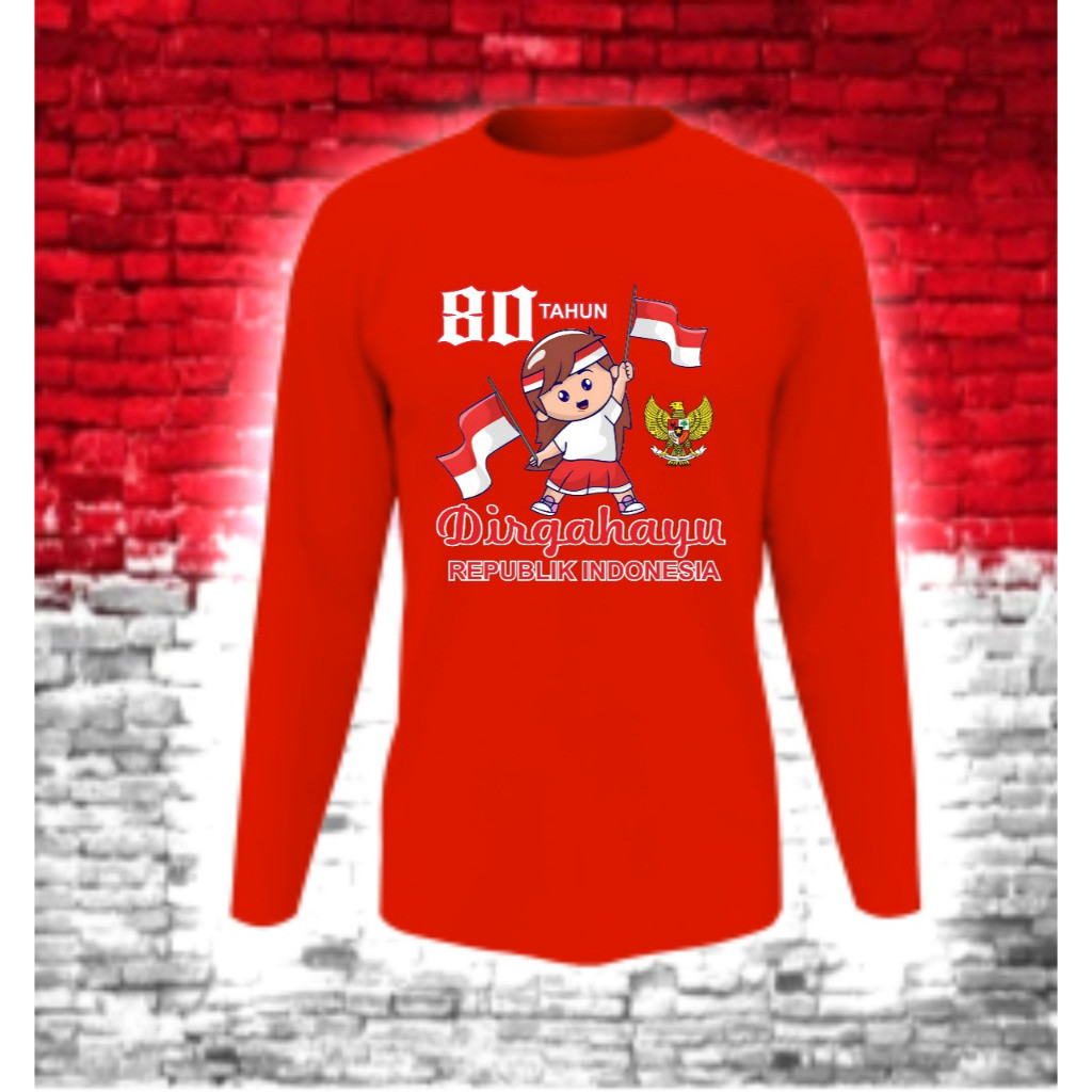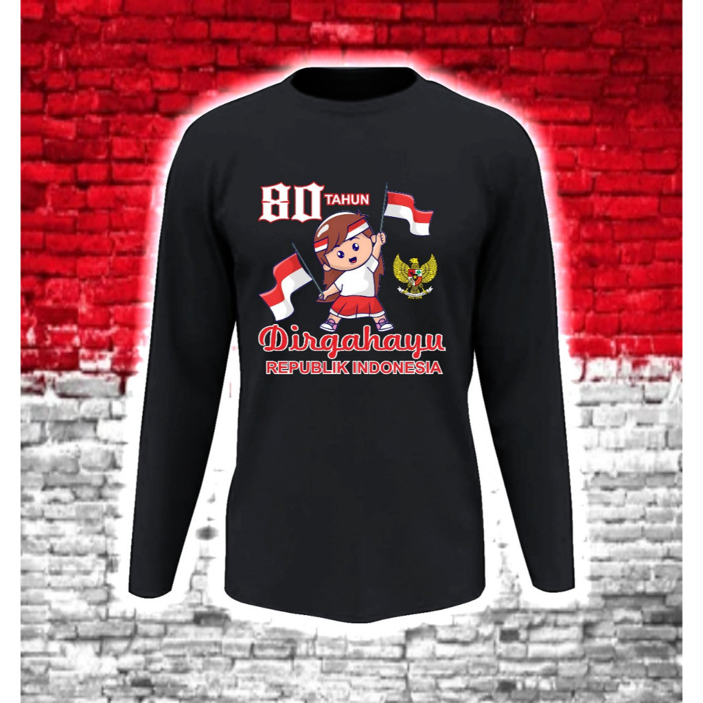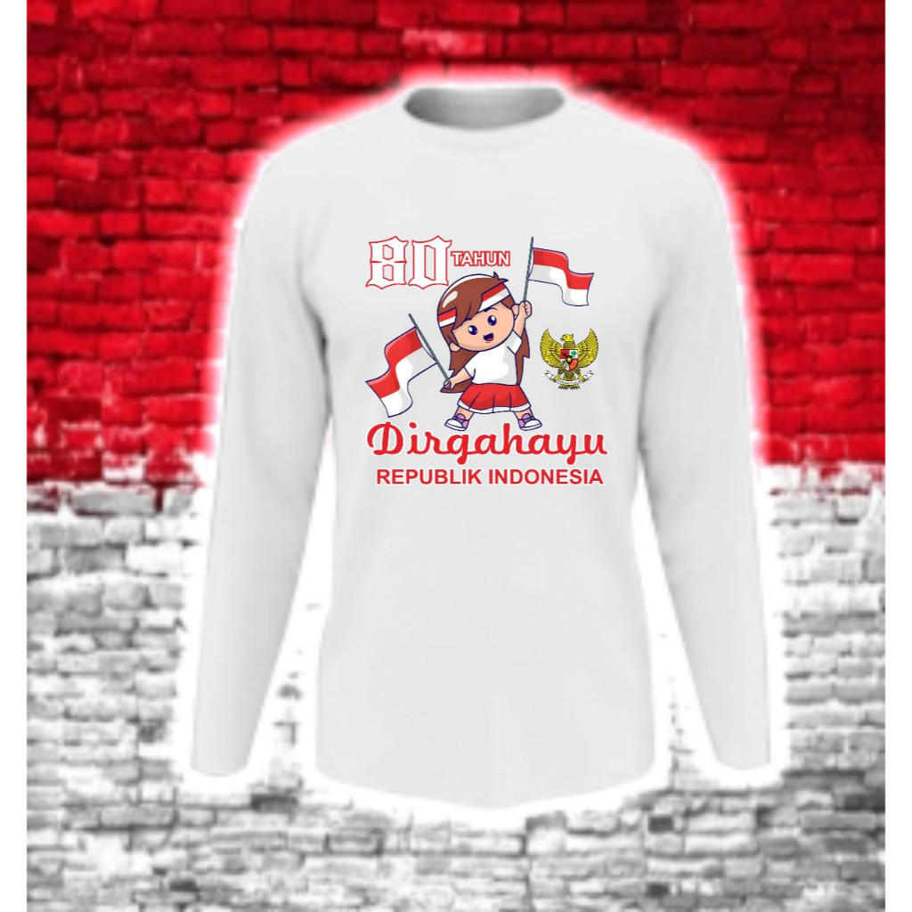jsjvian_thebest// Baju Atasan Kaos Cewek-Cowok LENGAN PANJANG CEW BENDERA DUA MERDEKA AGUSTUSAN TAHUN 80 DEWASA UK M L XL XXL