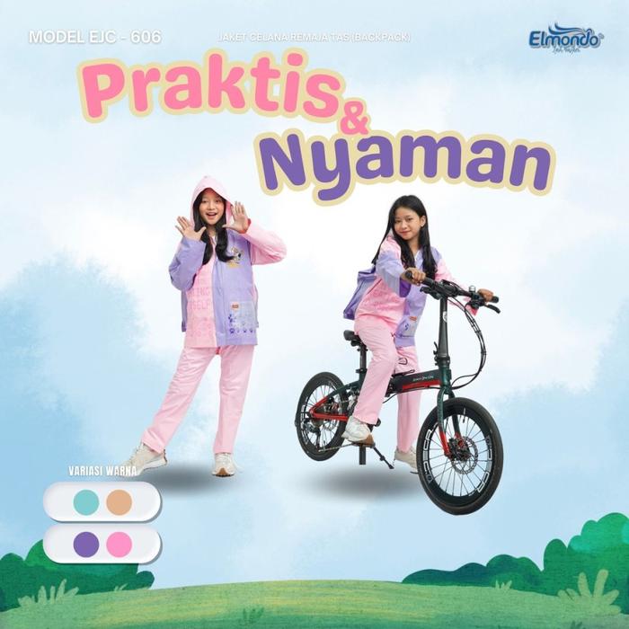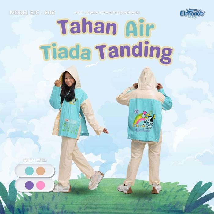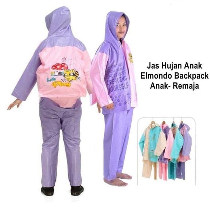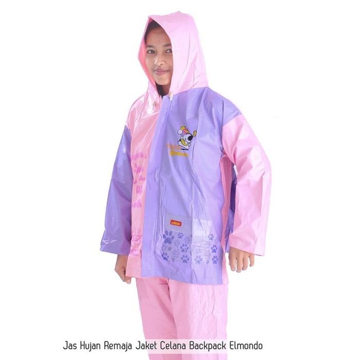 Jas Hujan Anak Remaja Stelan Setelan Elmondo Backpack Tas 606 Tahan air - pink kombinasi ungu