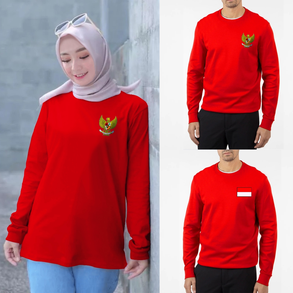 Kaos Pria dan Wanita Merah Putih Lengan Panjang / 17 agustus / Tshirt Merah Polos/Motif Baby Terry Premium Trending,lembut