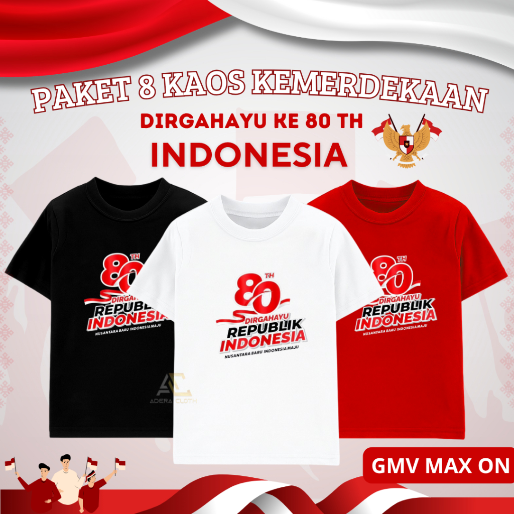 Paket 8 kaos merdeka - kaos kemerdekaan 17 agustus - kaos kemerdekaan lengan pendek warna merah hitam putih - kaos agustusan