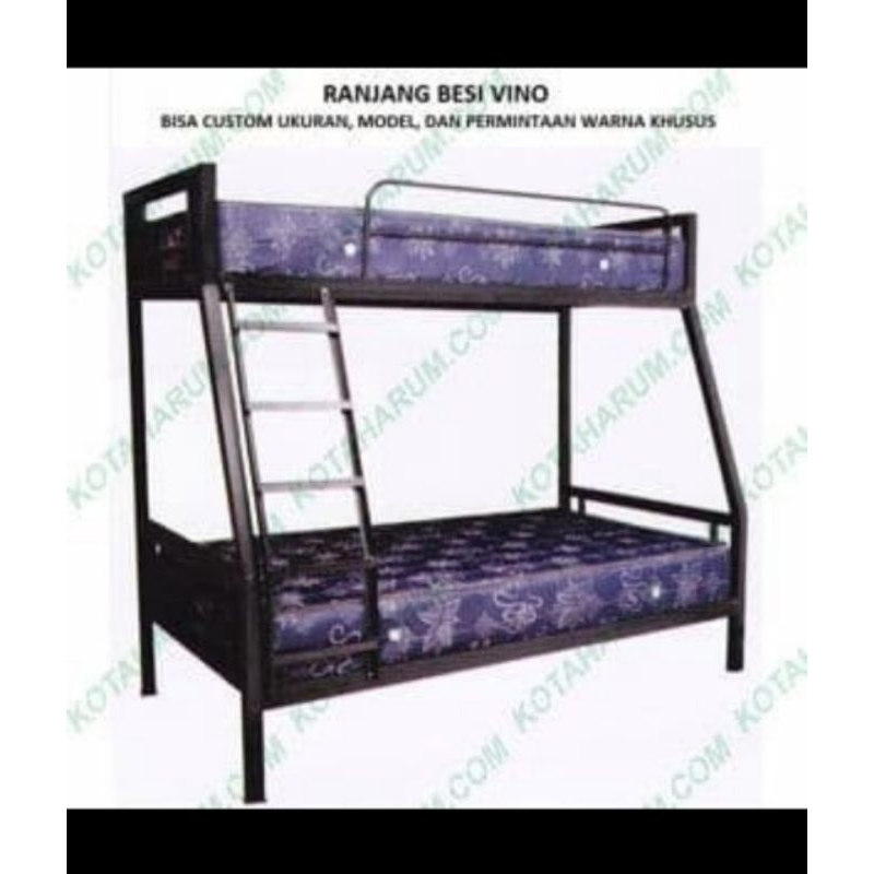 ranjang bed besi susun tingkat 2 orang vino hitam murah bandung no 3 4 atas 90 bawah 120 3/4