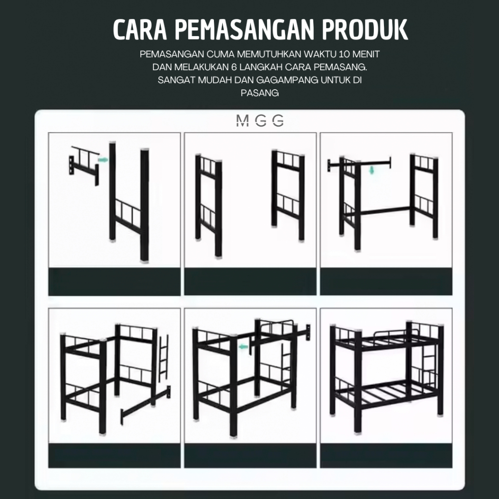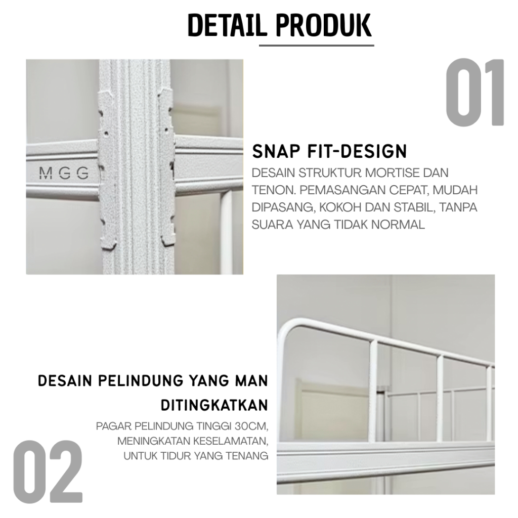 MGG Ranjang Tingkat Besi Bed Susun Minimalis Dipan Kasur Tingkat 2 Divan Susun 90x200 CM