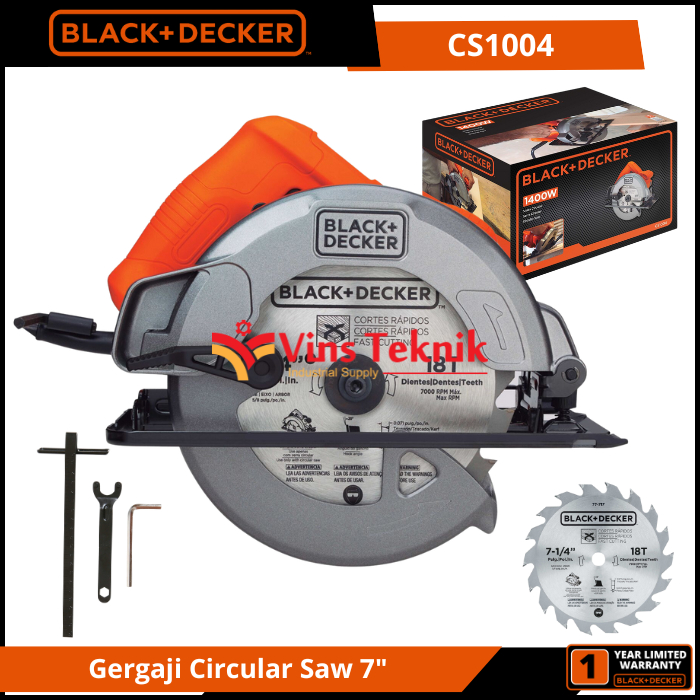 Black + Decker CS1004 Mesin Gergaji Kayu Sirkel Circular Saw 7" 185MM CS 1004