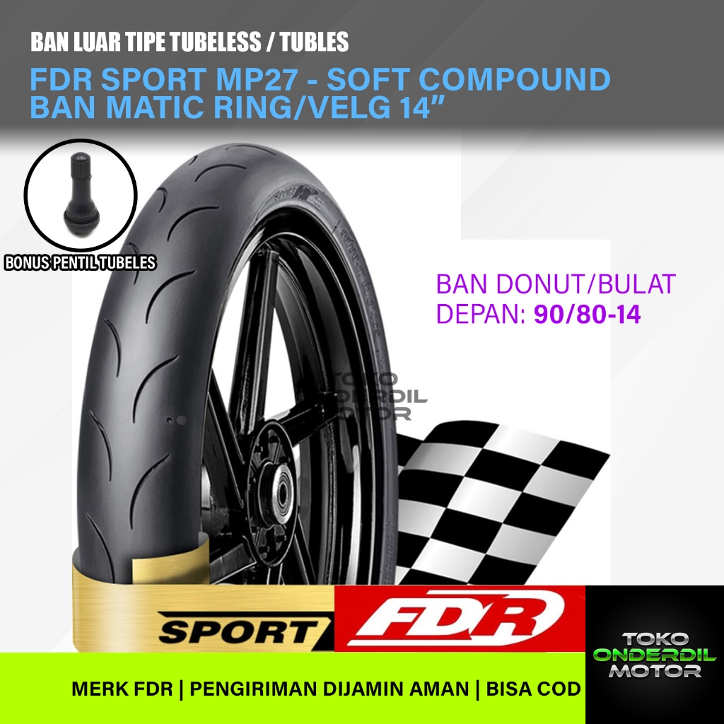 FDR MP27 Ban Luar Tubeless Soft Compound 90/80-14 Sport Racing Compound Soft Balap Ban Motor Matic Beat Vario Genio ring 14 Scoopy Old Mio /J/M3/S/Z Fino Xeon Lexi Ring 14 BL FDR Sport MP-27