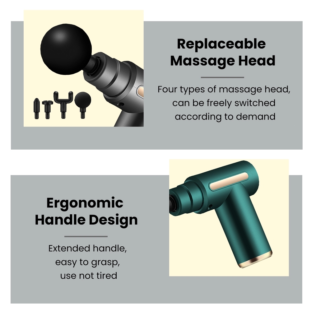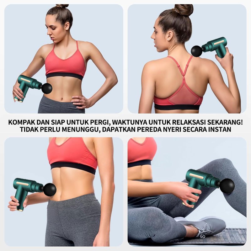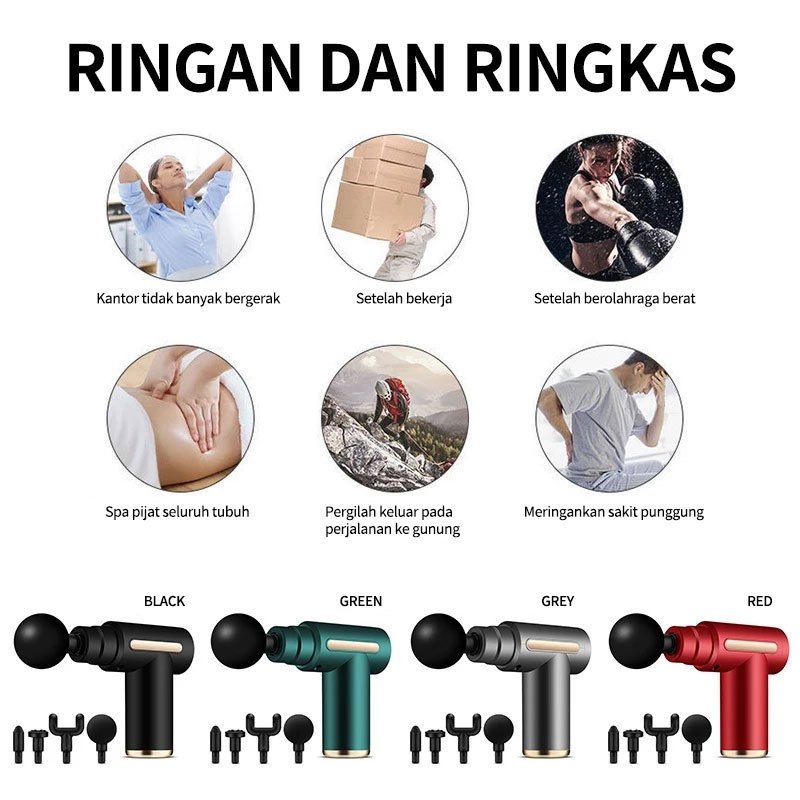 4 in 1 Massage Gun Alat pijat elektrik pijat getar elektrik DEEP TISSUE MUSCLE MASSAGER GUN-black